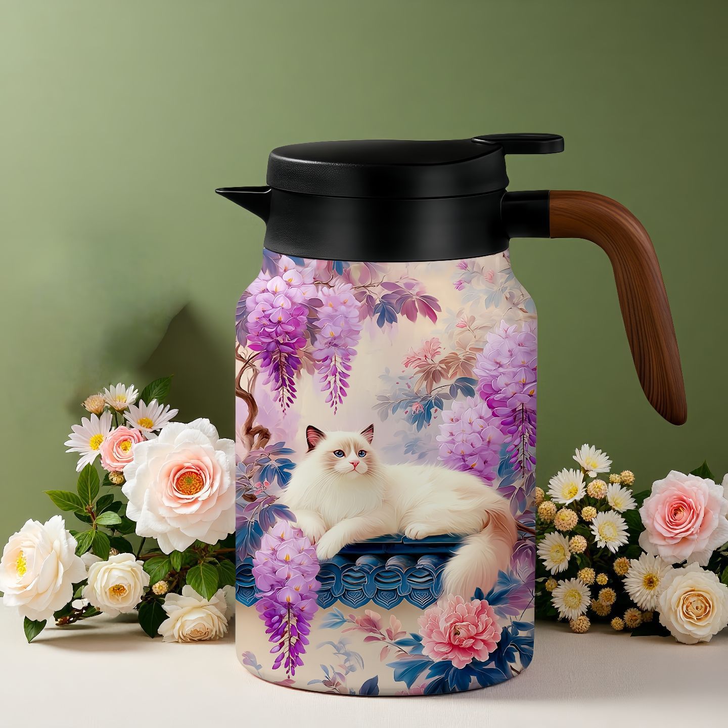• 청화 공작 주전자 (우드 패턴 손잡이)