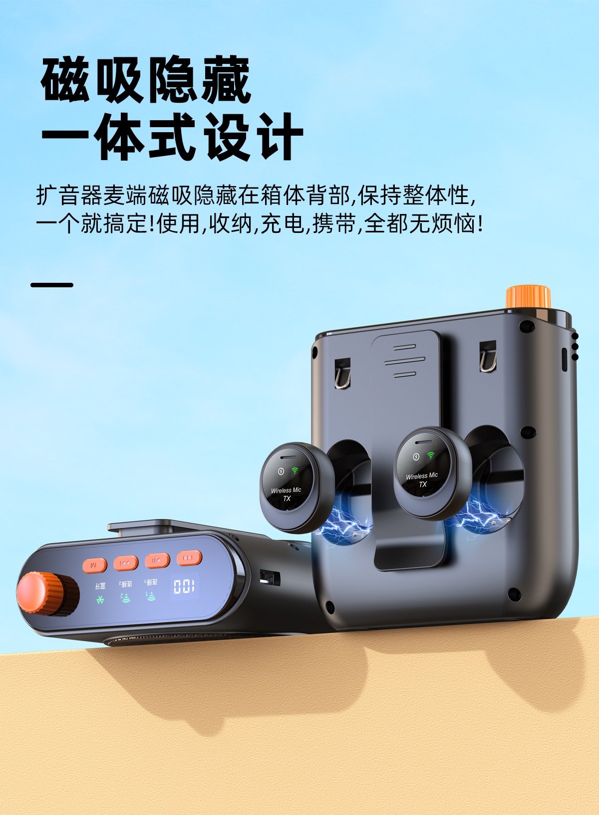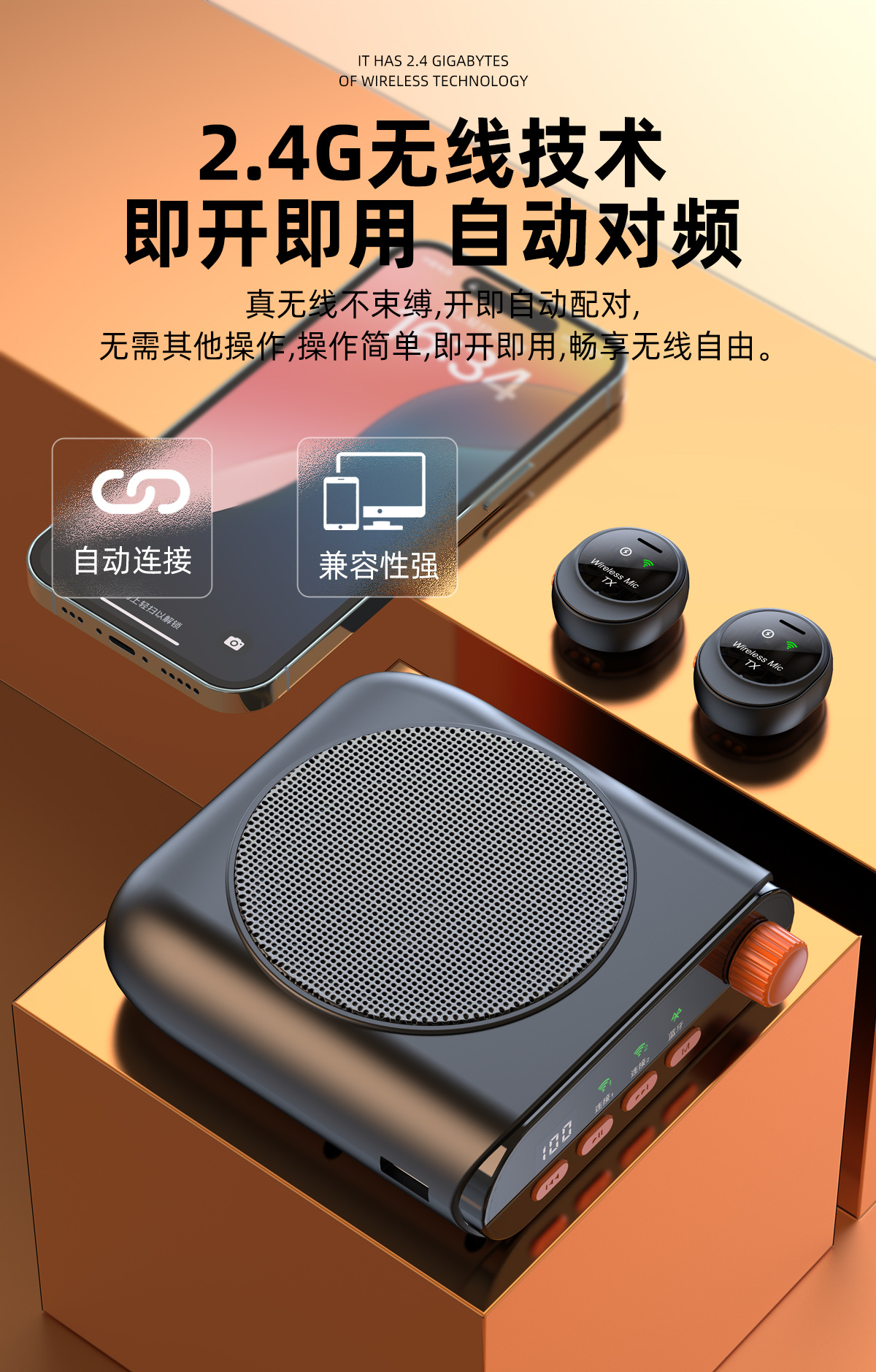 새로운 무선 꿀벌 라우드 스피커 J98 칼라 클립 마이크 라이브 촬영 휴대용 오디오 충전 창고