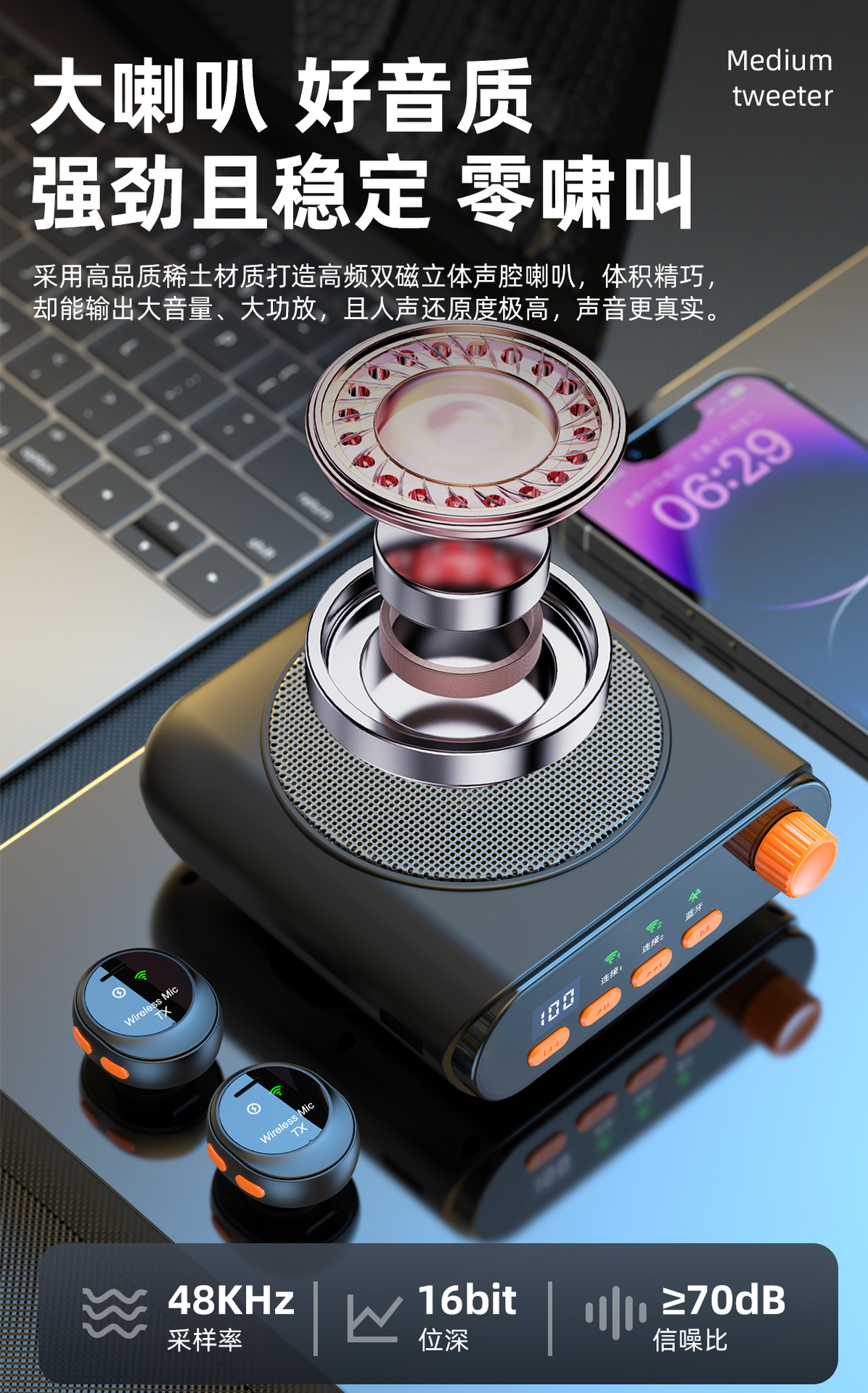 새로운 무선 꿀벌 라우드 스피커 J98 칼라 클립 마이크 라이브 촬영 휴대용 오디오 충전 창고스토어 가기