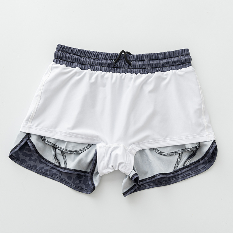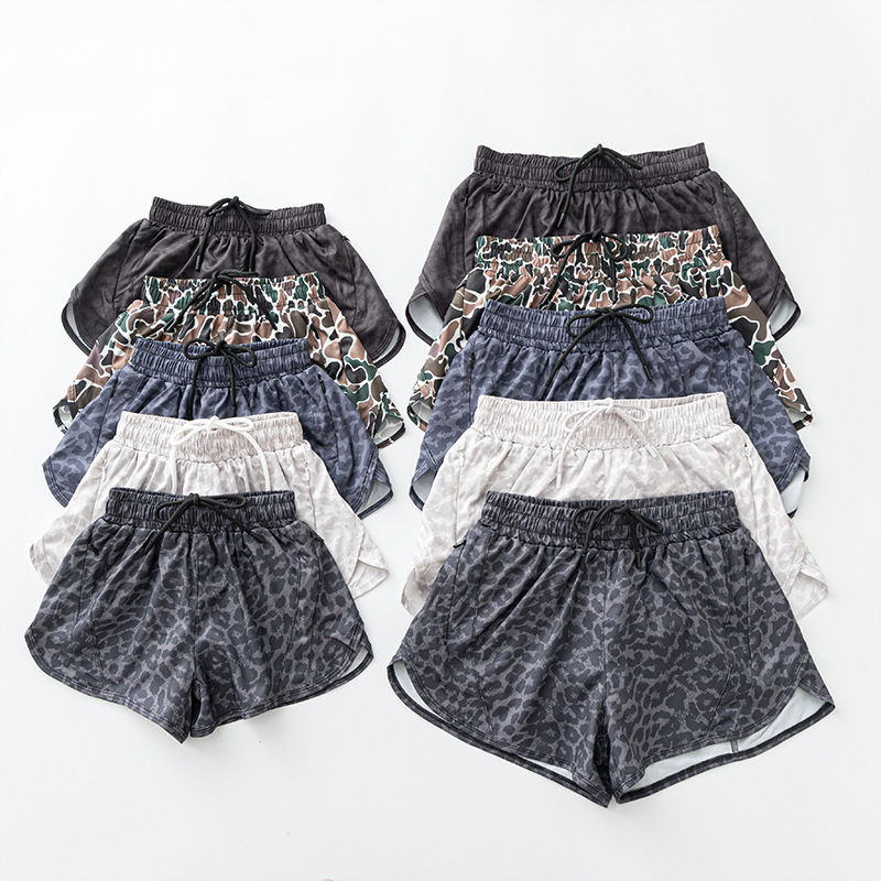 유럽과 미국의 대외 무역 가족 스포츠 여성 반바지 레오파드 무늬 위장 가짜 투피스 안티 워킹 빠른 건조 탄성 피트니스 반바지스토어 가기