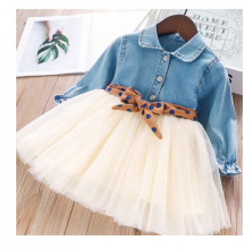 소녀 드레스, 가을 새로운 긴팔 데님 거즈 스커트, 아기 스커트, 한국 스타일 패션 공주 스커트