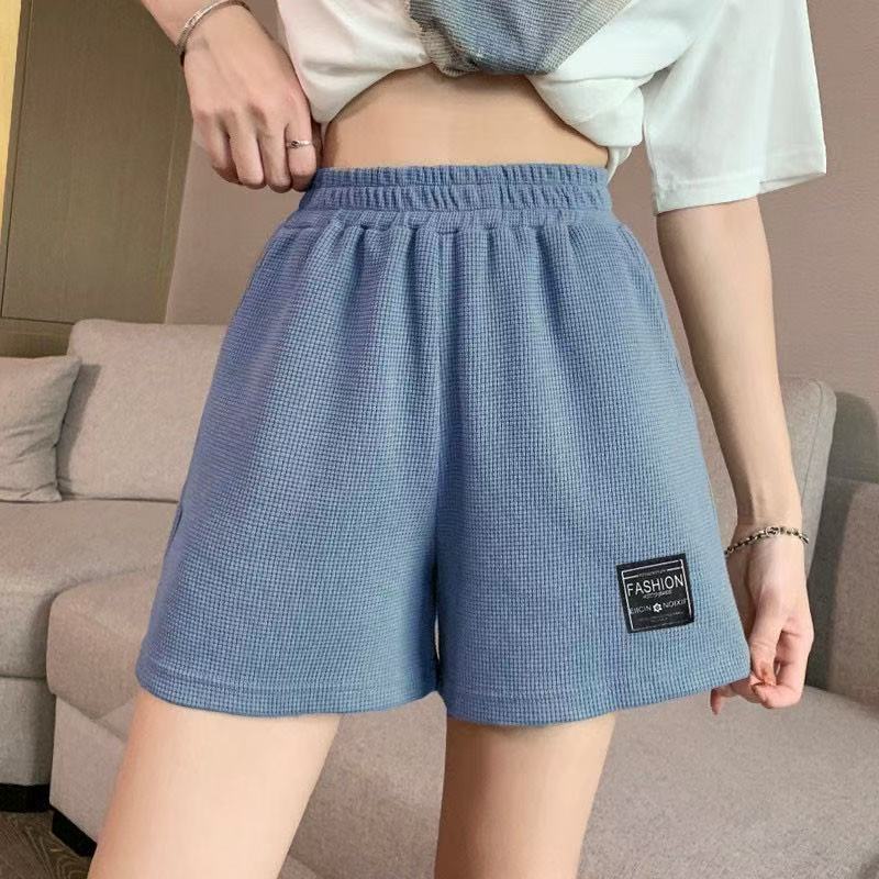 여성을위한 와플 스포츠 반바지 여름 2025 새로운 한국 스타일 느슨한 높은 허리 홈 와이드 레그 핫 바지 겉옷 도매스토어 가기