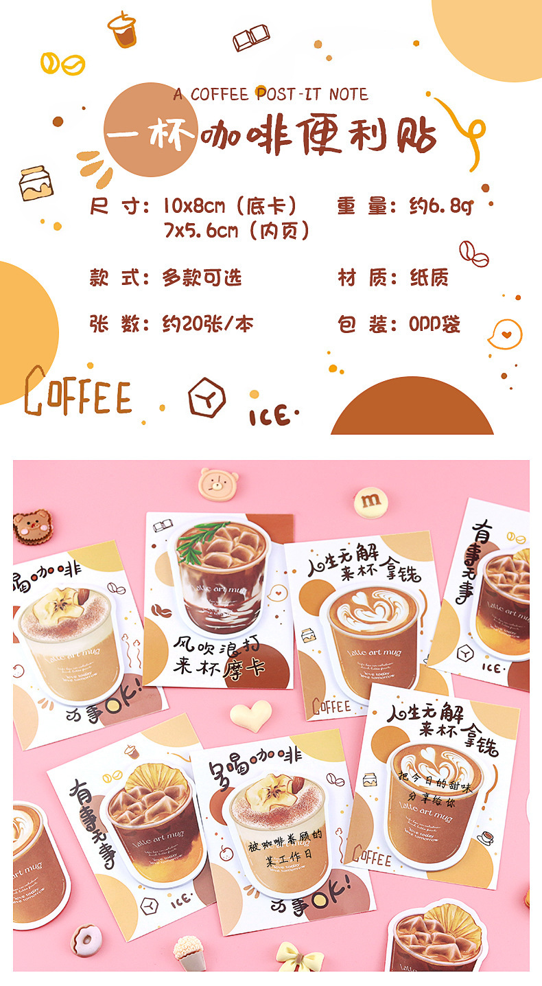 귀여운 손 계정 소재 커피 시리즈 메모장 학생 실용적인 메시지 기념 책 끈적 강한 n 배 도매스토어 가기