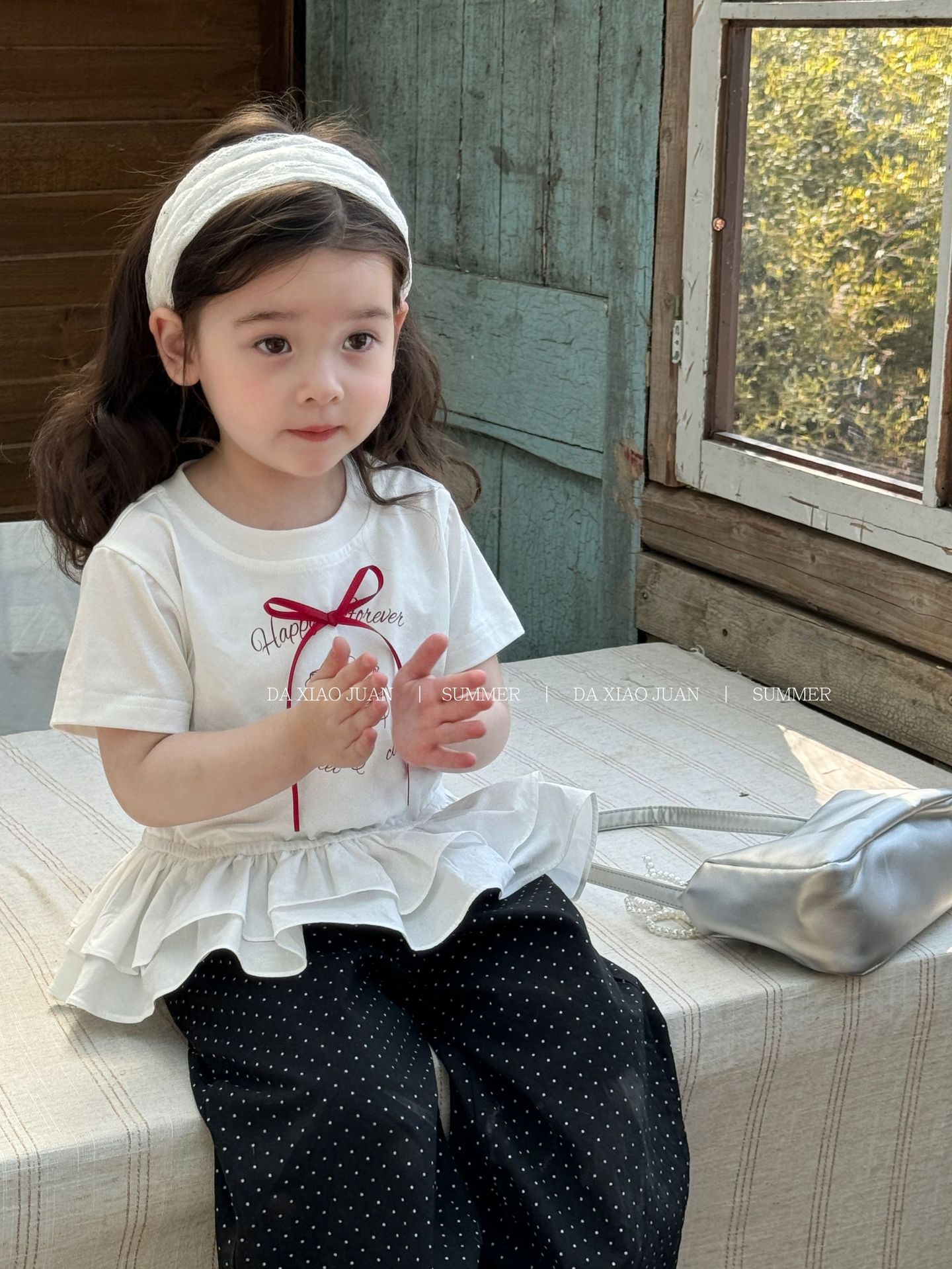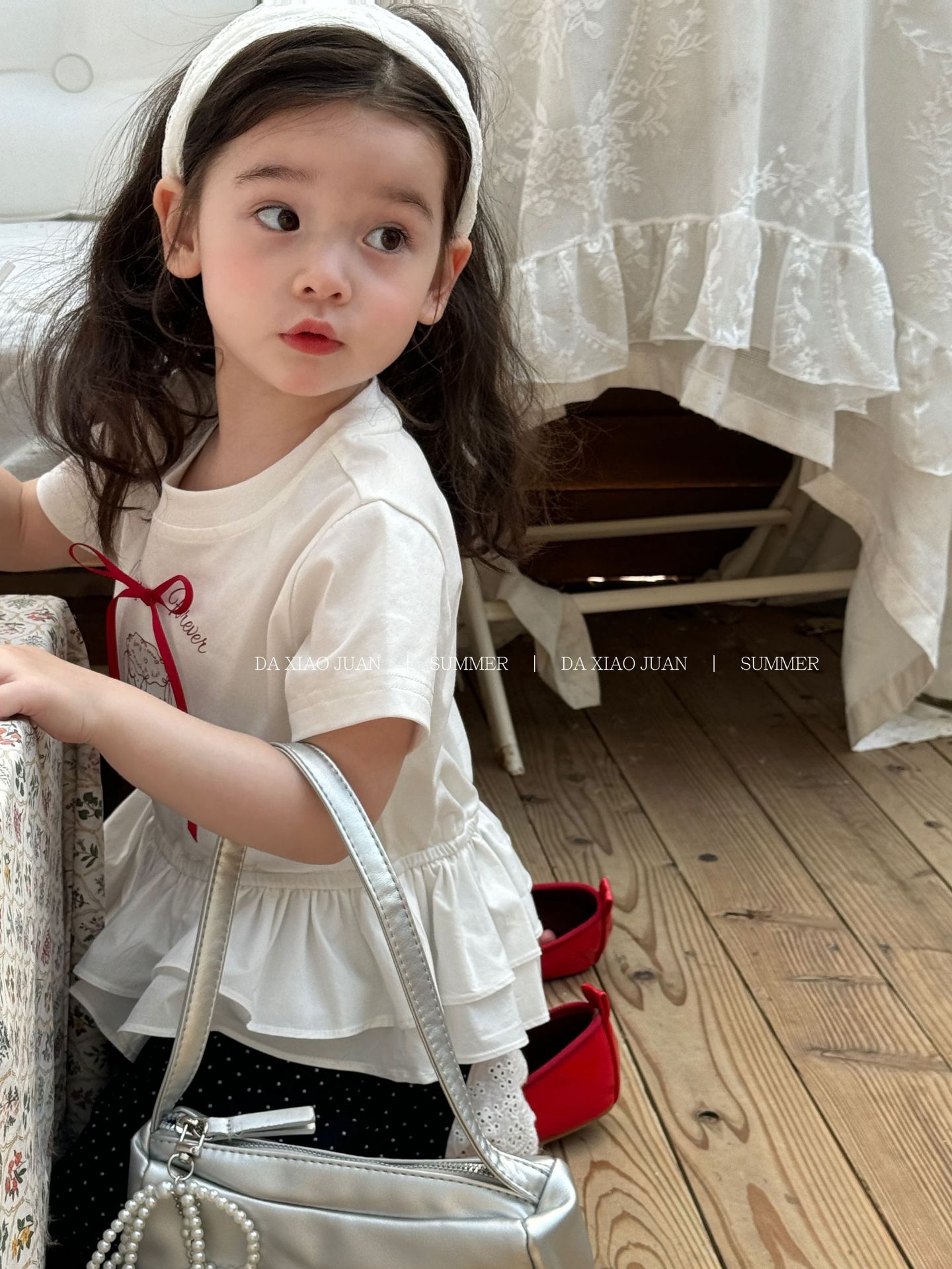 [사이즈 롤] 어린이 여름 기본 백 달콤한 활 소녀의 반팔 T-83025