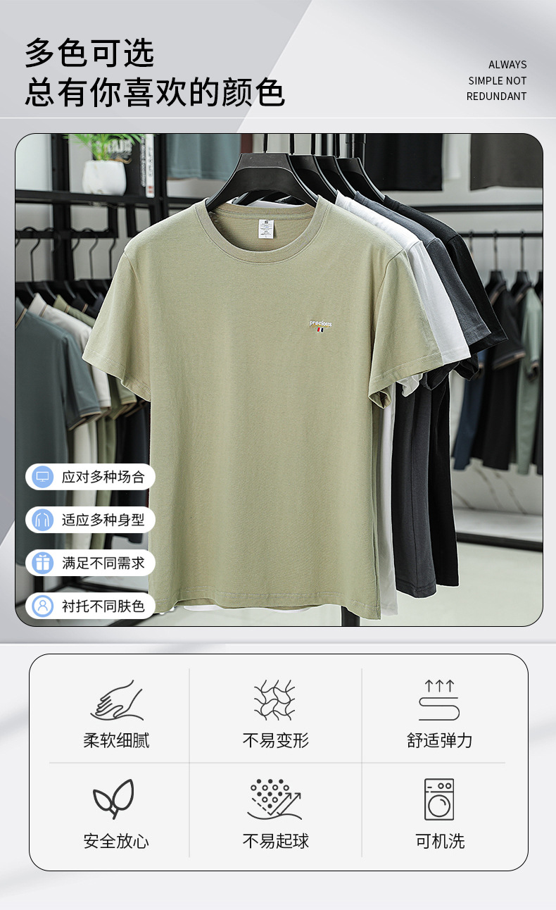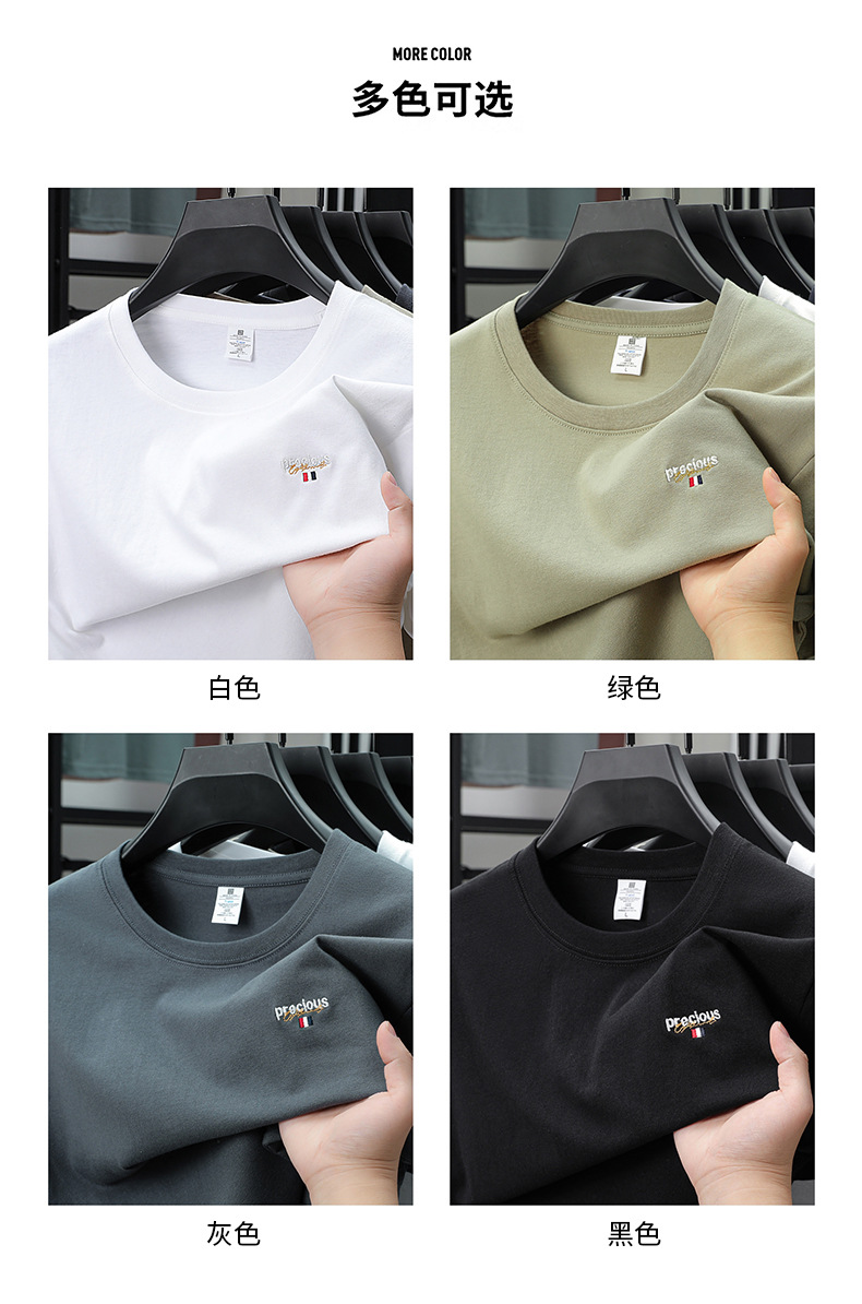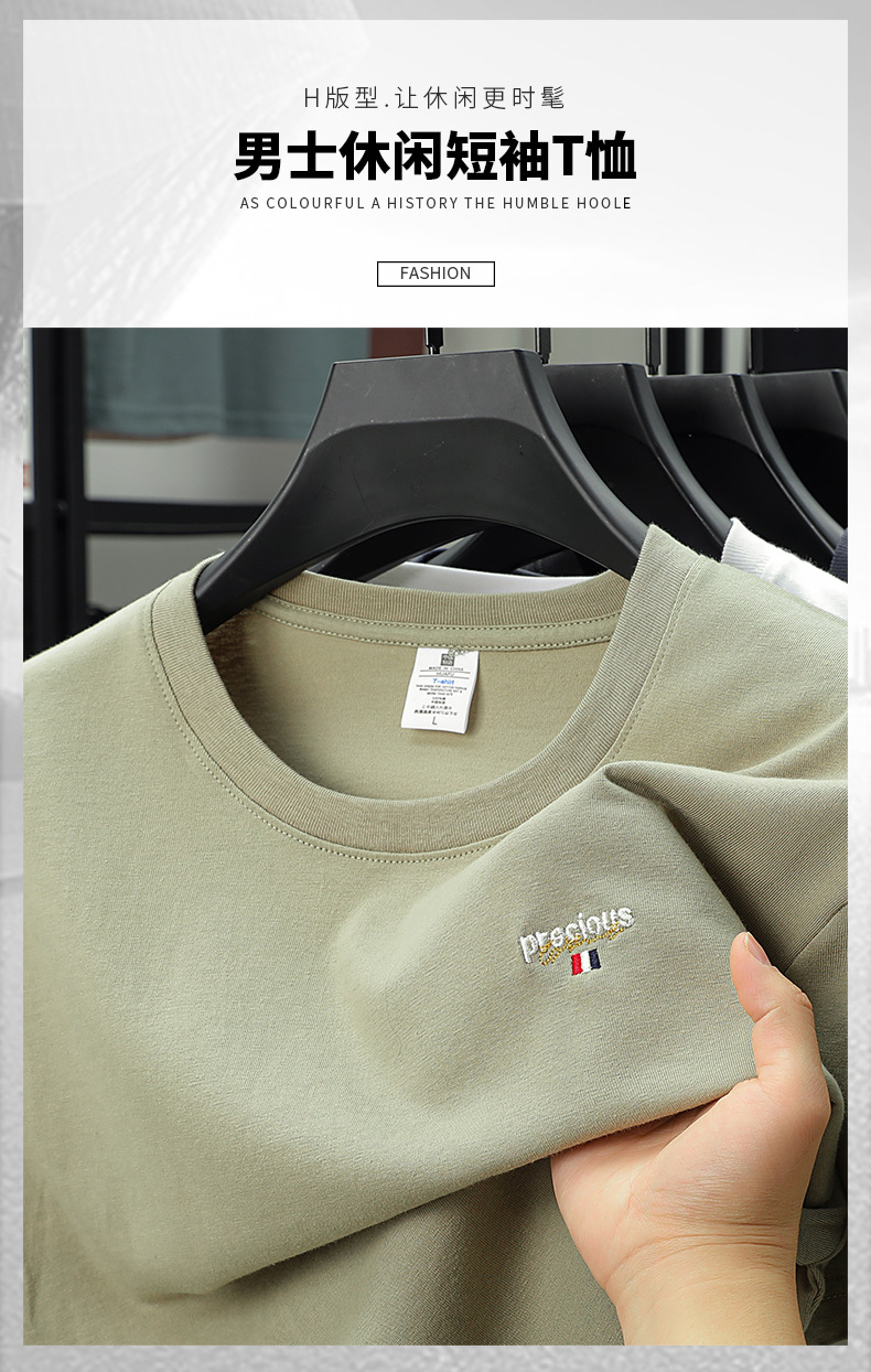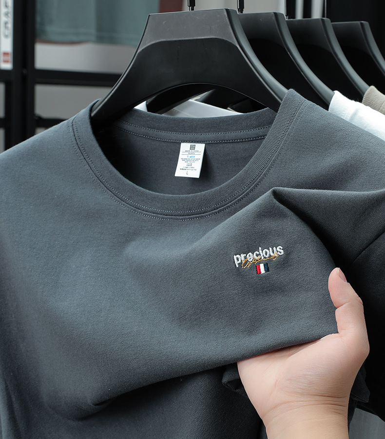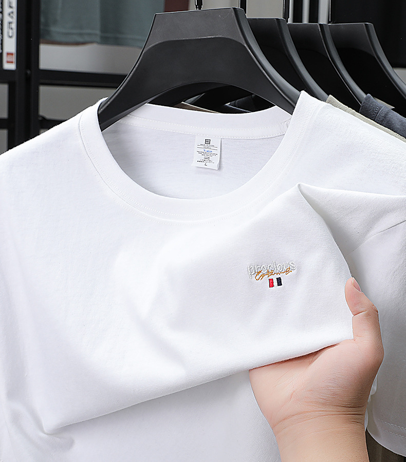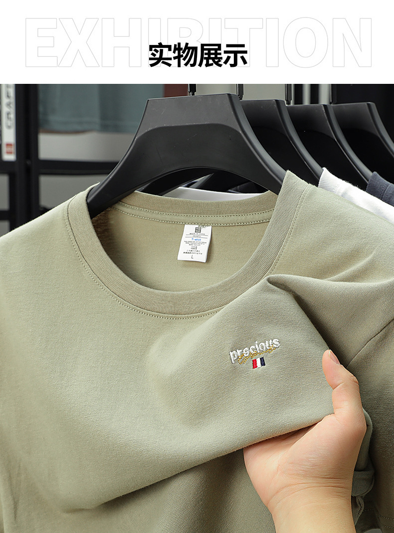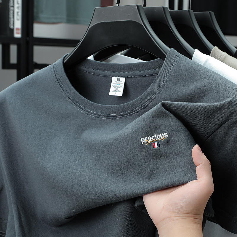2025 년 여름 새 면 티셔츠 남자 중년 한국 스타일 캐주얼 패션 트렌디 자수 크루 넥 티셔츠 반팔 남성스토어 가기