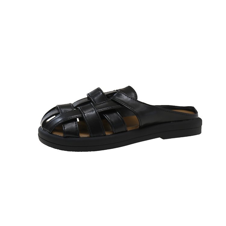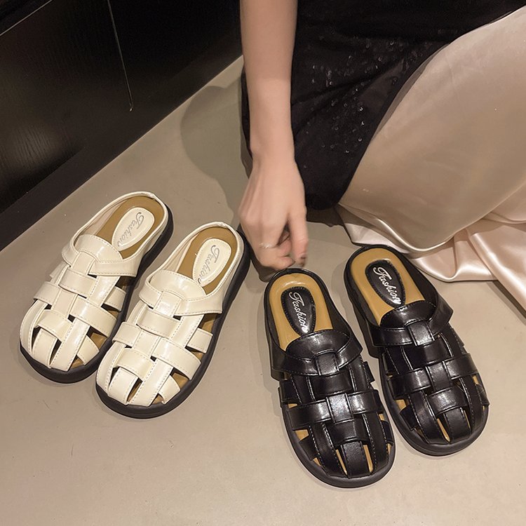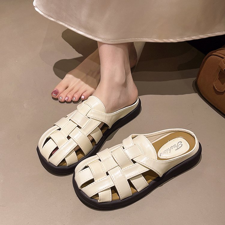 바오터우 하프 슬리퍼 여성 아우터웨어 2025 여름 새로운 빈티지 짠 할로우 아웃 슬리퍼 플랫폼 슬립 온 게으른 신발스토어 가기