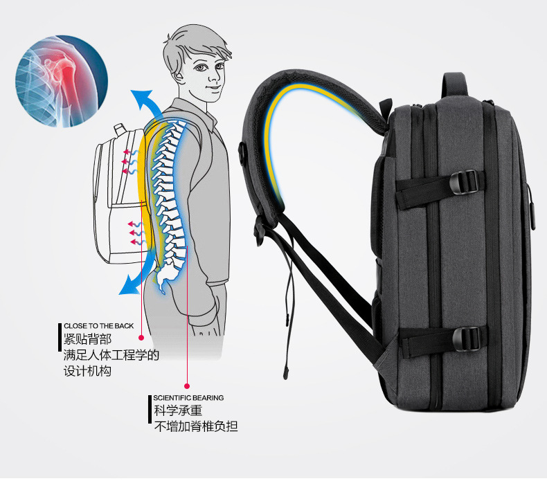 국경 간 새로운 확장 가능한 비즈니스 배낭 노트북 가방 확장 대용량 여행 배낭