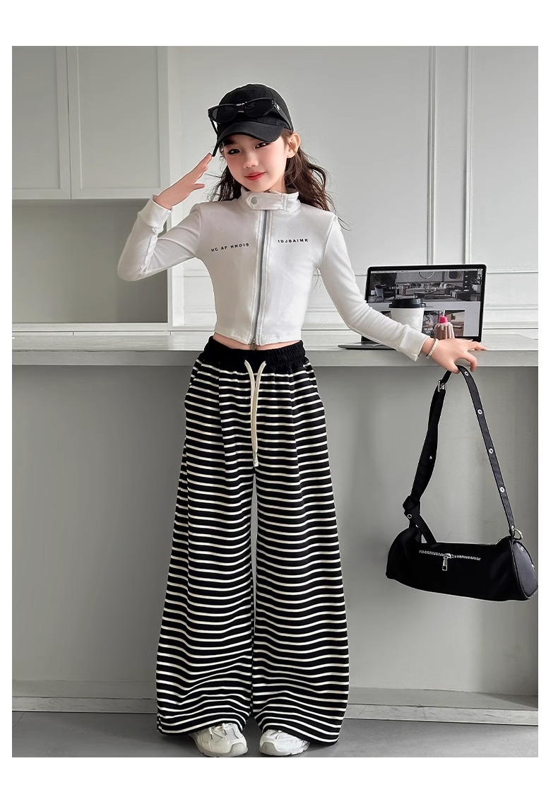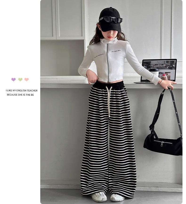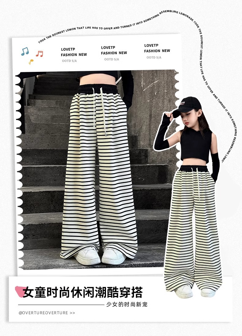 소녀 바지 봄과 여름 서양식 줄무늬 캐주얼 바지 올매치 아기 느슨한 외부 착용 한국 스타일 얇은 바지스토어 가기