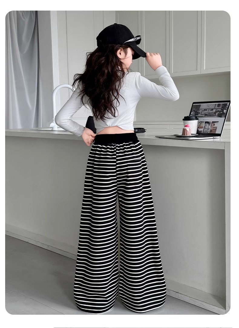 소녀 바지 봄과 여름 서양식 줄무늬 캐주얼 바지 올매치 아기 느슨한 외부 착용 한국 스타일 얇은 바지
