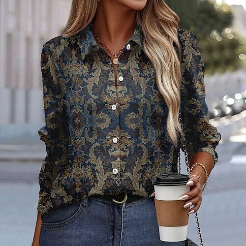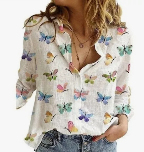 유럽과 미국의 국경 간 뜨거운 판매 긴 소매 옷깃 3D 인쇄 스티칭 컬러 디자인 틈새 캐주얼 셔츠 여성 POD스토어 가기