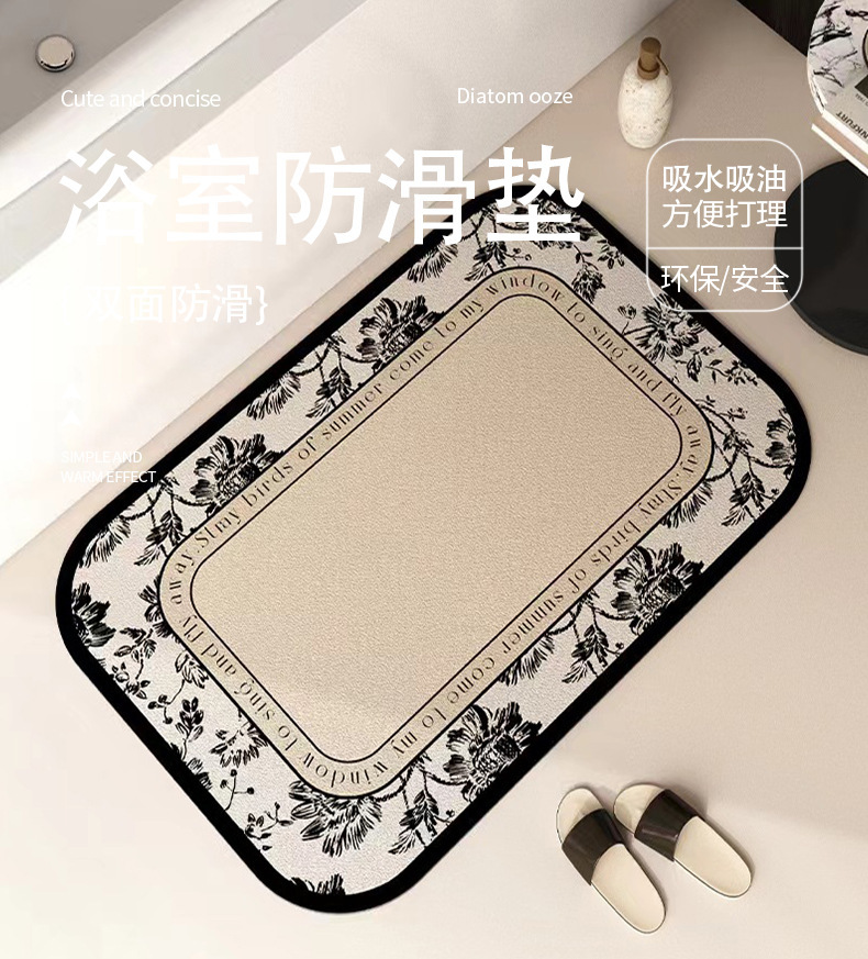 프랑스 스타일의 고급 욕실 바닥 매트 흡수성 먼지 방지 간편한 발 매트 욕실 가정용 미끄럼 방지 Diatom 진흙 바닥 매트