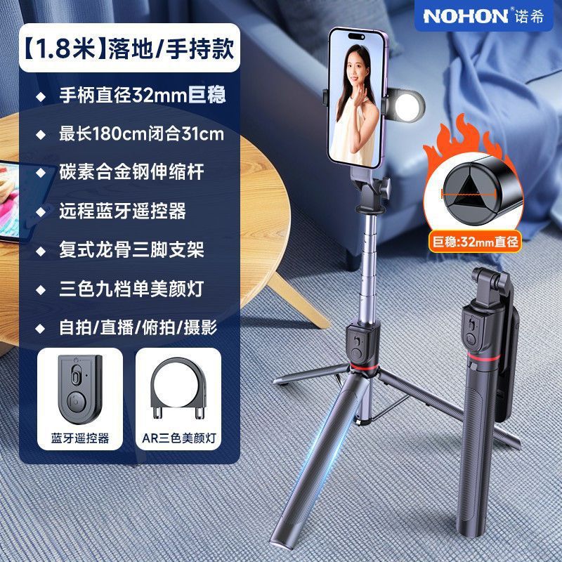 인기 있는 휴대폰 블루투스 셀카봉 스테인레스 스틸 삼각대 확장형 1.8m 사진 촬영 휴대용 라이브 방송 스탠드스토어 가기