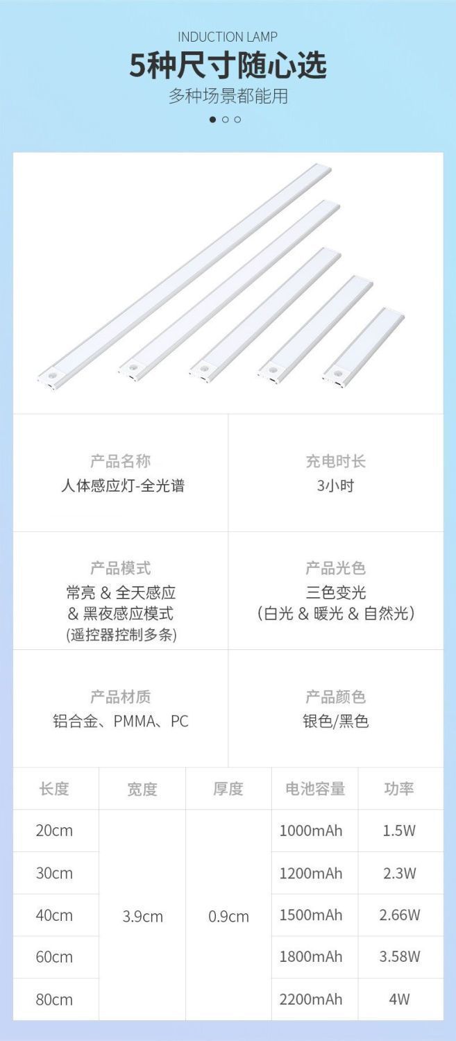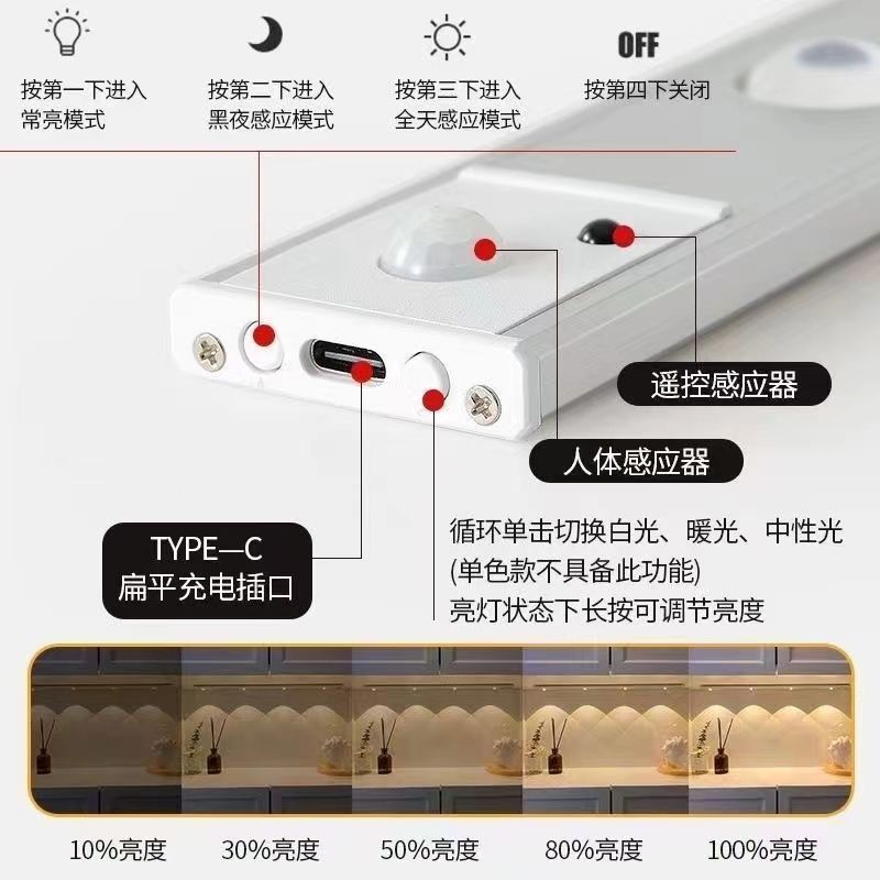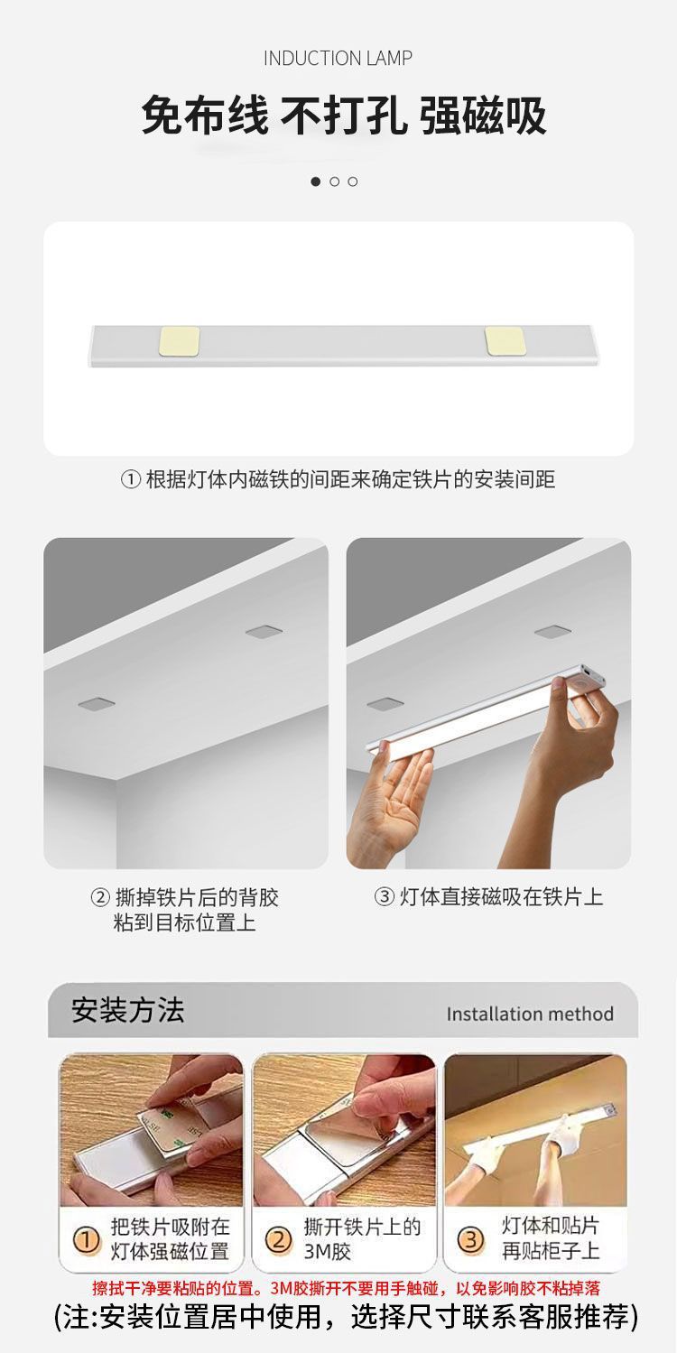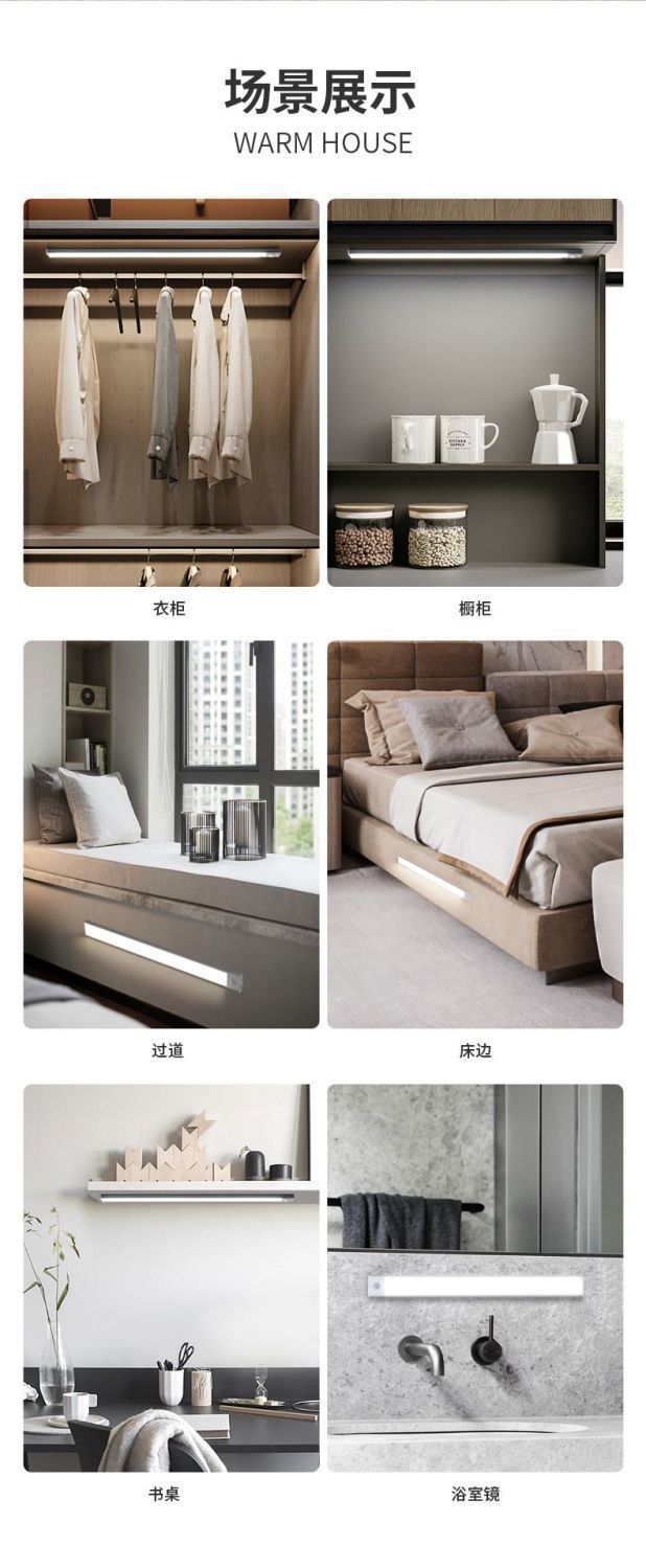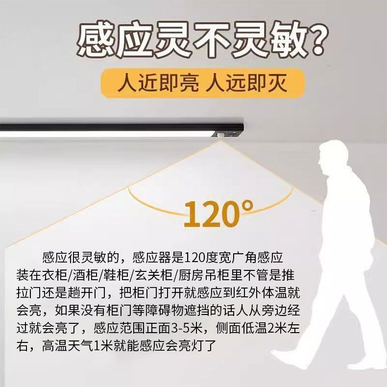 자기 충전식 의류 및 와인 캐비닛 인체 유도 램프 배선이 없는 초박형 LED 라이트 스트립 입구 캐비닛 스트립스토어 가기