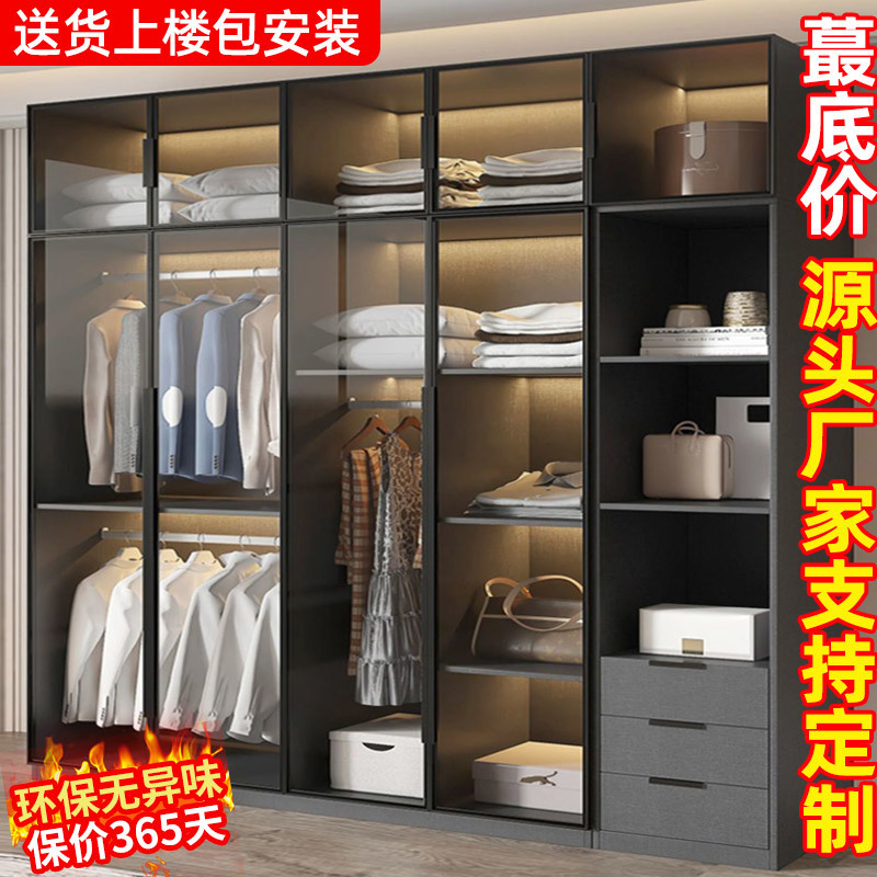 가벼운 고급 옷장 홈 침실 단단한 나무 작은 아파트 옷장 현대 간단한 보관 캐비닛 설치-무료 유리 캐비닛