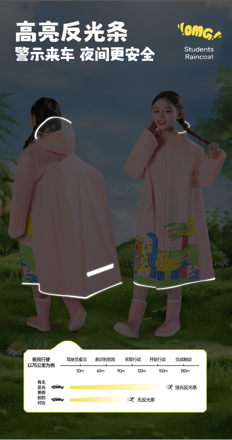 2025 새로운 어린이 비옷 6-12 세 10 대 소년 소녀 큰 아이 지퍼 원피스 스쿨 백 만화 판초스토어 가기