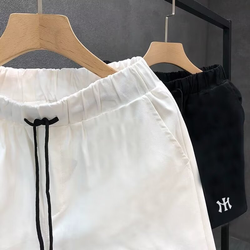 남성용 여름 아이스 실크 반바지, 얇은 한국 스타일 트렌디 스트레이트 레그 루즈하고 다재다능한 캐주얼 스포츠 바지 트렌디 브랜드스토어 가기