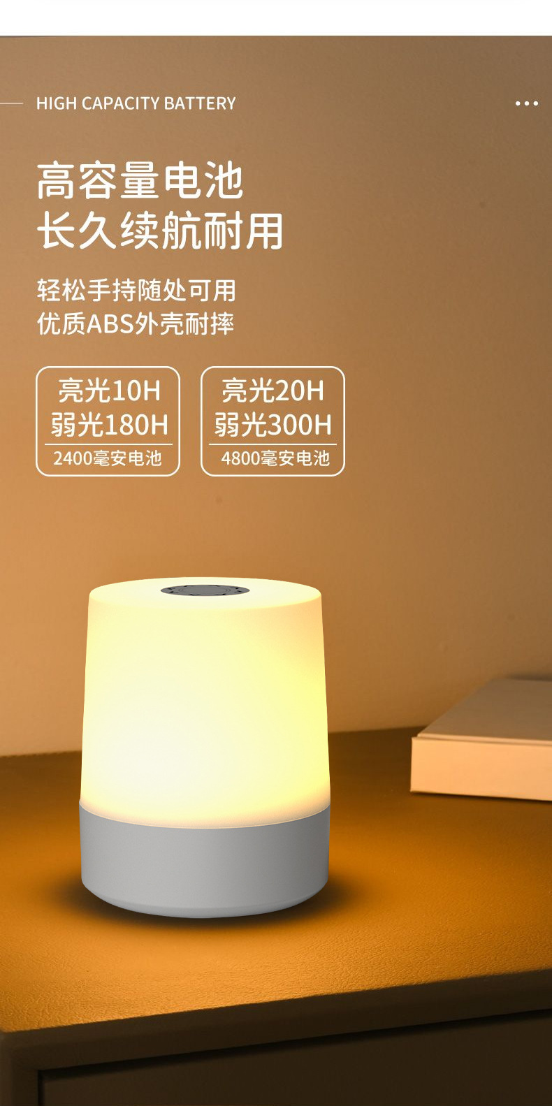 LED 충전식 터치 라이트, 아기 침대등, 기숙사 무단계 3색 조광 엄마와 아기 야간등, 밝기 조절 가능