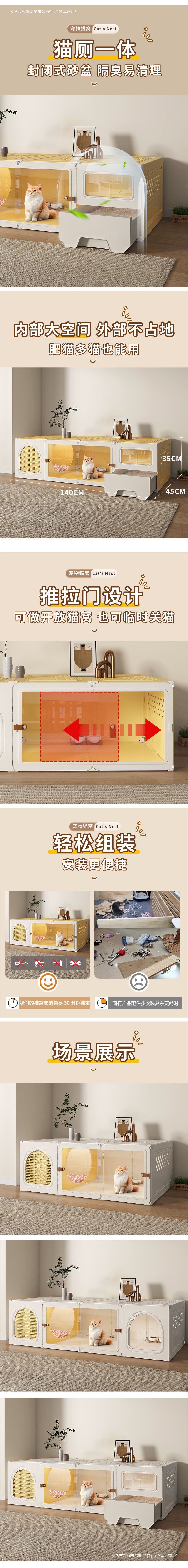 • (105*45*35) 고양이 배변 상자 포함#노란색