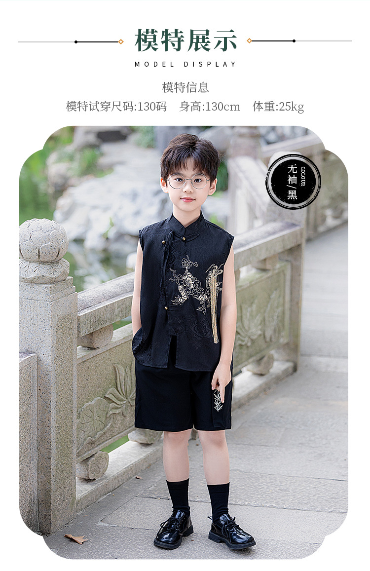소년 정장 여름 새로운 중국 스타일 스탠드 칼라 셔츠 중국 스타일 기린 자수 Hanfu 어린이 쇼 패션쇼 드레스스토어 가기