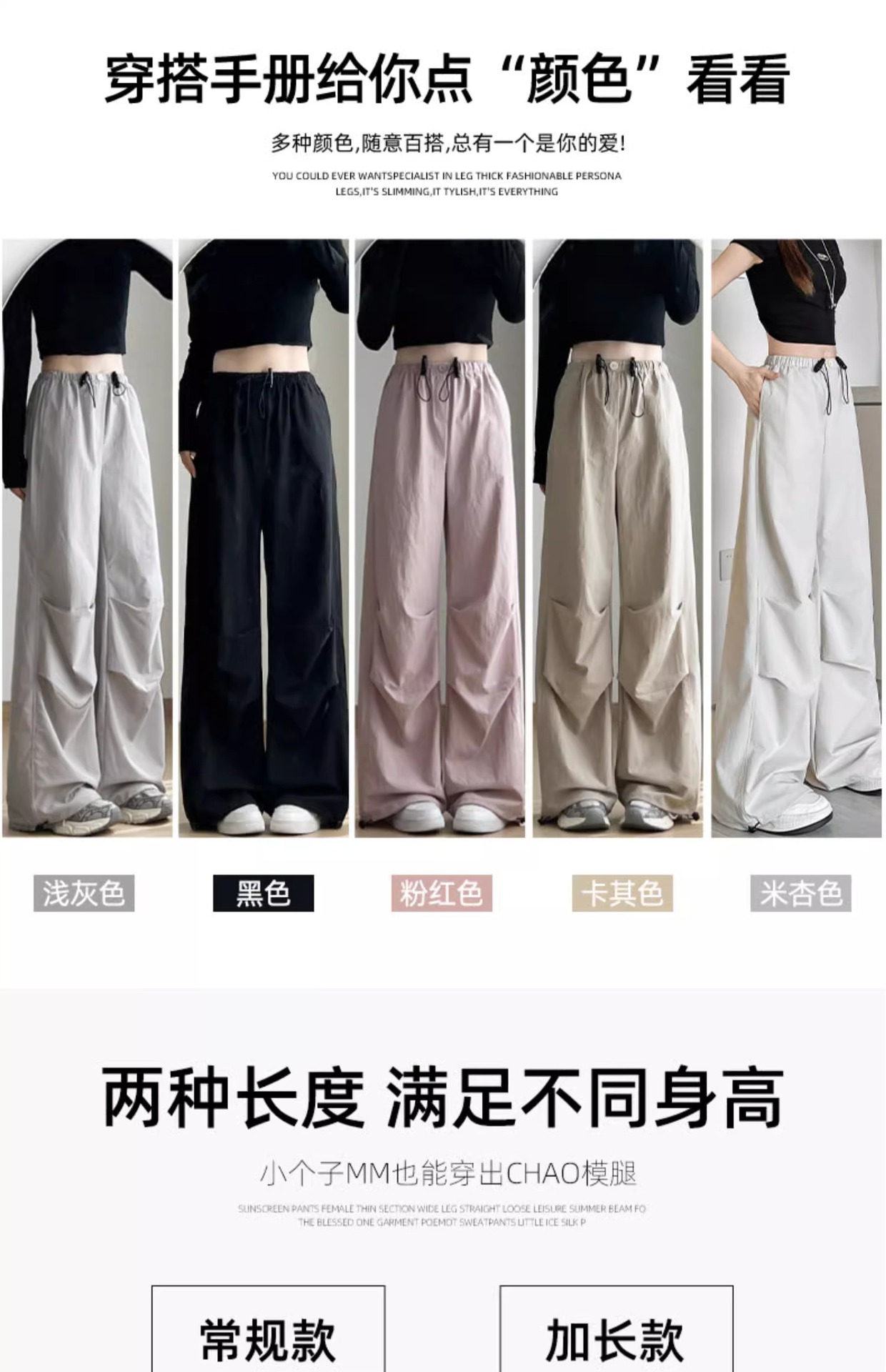 라이트 그레이 작업복 여성 여름 2025 새로운 높은 허리 슬리밍 캐주얼 야외 등산 느슨한 빠른 건조 스포츠 바지