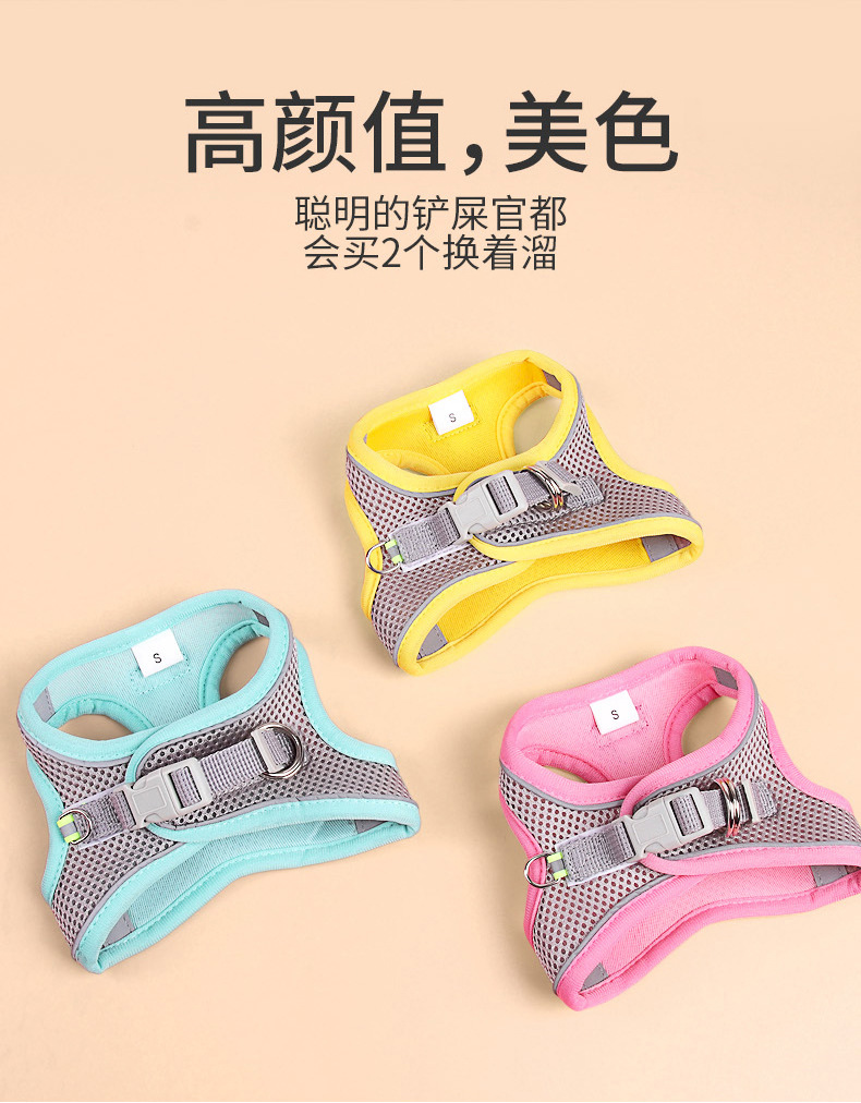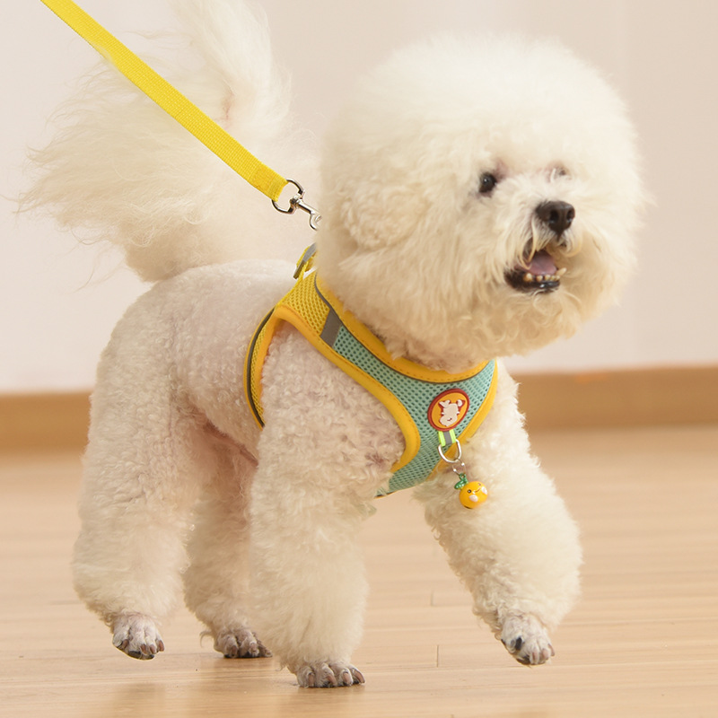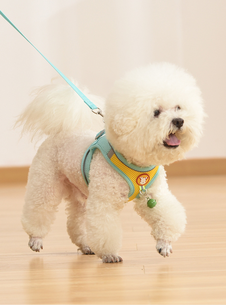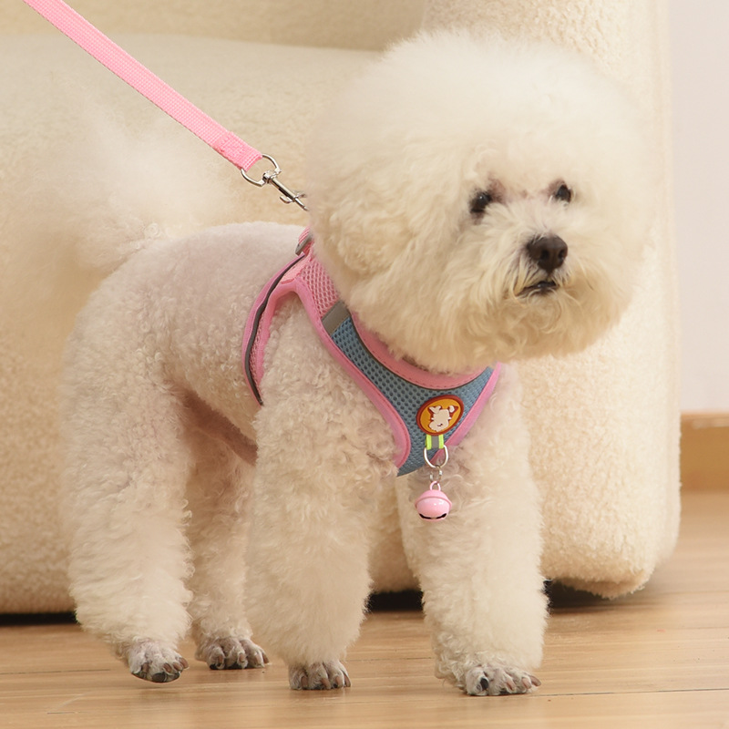 강아지 가죽끈, 소형견 비숑 테디 포메라니안 조끼형 하네스, 통기성이 좋고 편안한 강아지 산책용 가죽끈, 강아지 가죽끈