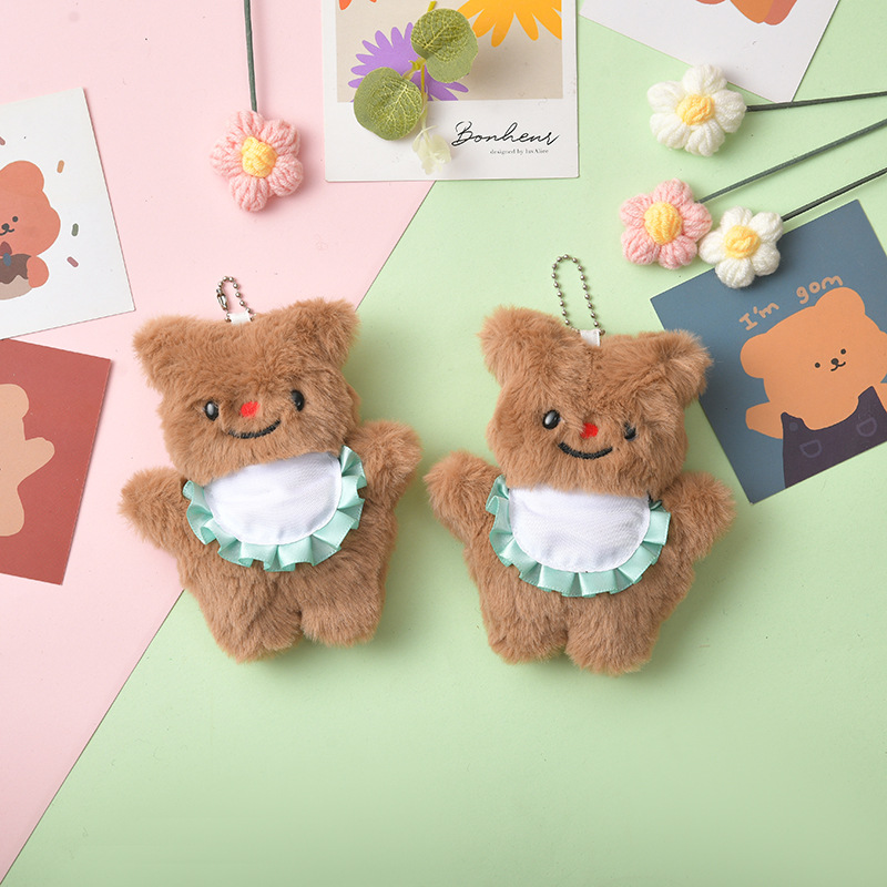 만화 버터 턱받이 곰 키 체인 삐걱 거리는 곰 봉제 펜던트 귀여운 배낭 인형 보석