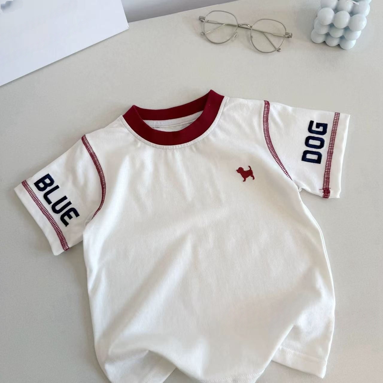 어린이 인기 반팔 2025 여름 코튼 라운드 넥 탑 베이비 일본 캐주얼 다목적 반팔 티셔츠 도매스토어 가기