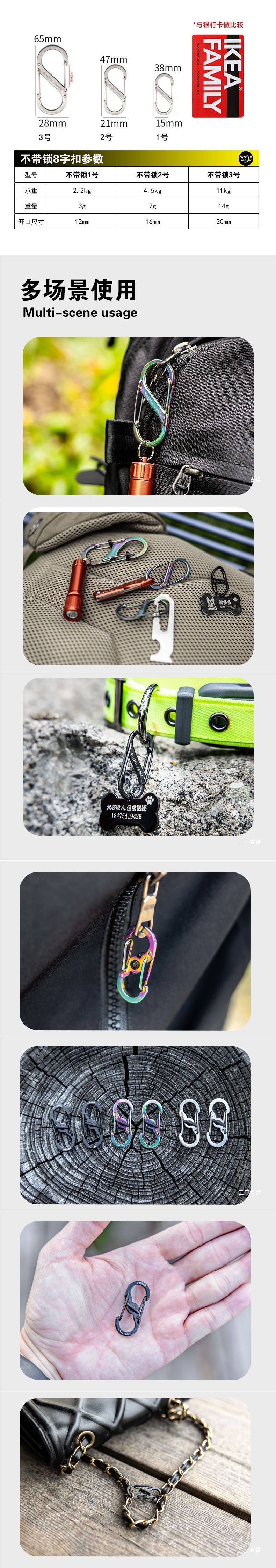 Naiai niteize 등산 버클 8 캐릭터 버클 도난 방지 빠른 교수형 버클 키 체인 8 캐릭터 버클 교수형 버클 야외 내구성스토어 가기