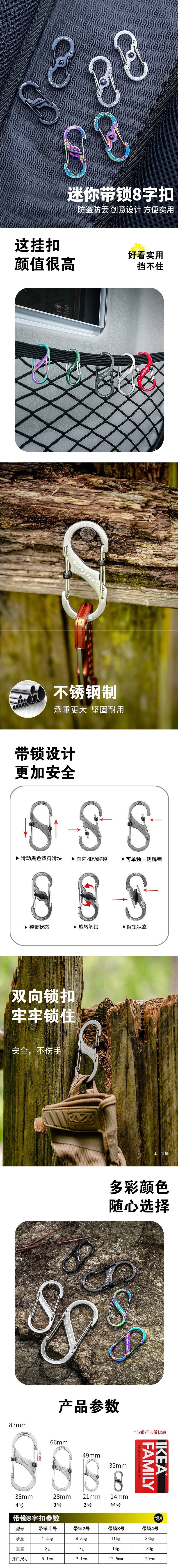 Naiai niteize 등산 버클 8 캐릭터 버클 도난 방지 빠른 교수형 버클 키 체인 8 캐릭터 버클 교수형 버클 야외 내구성