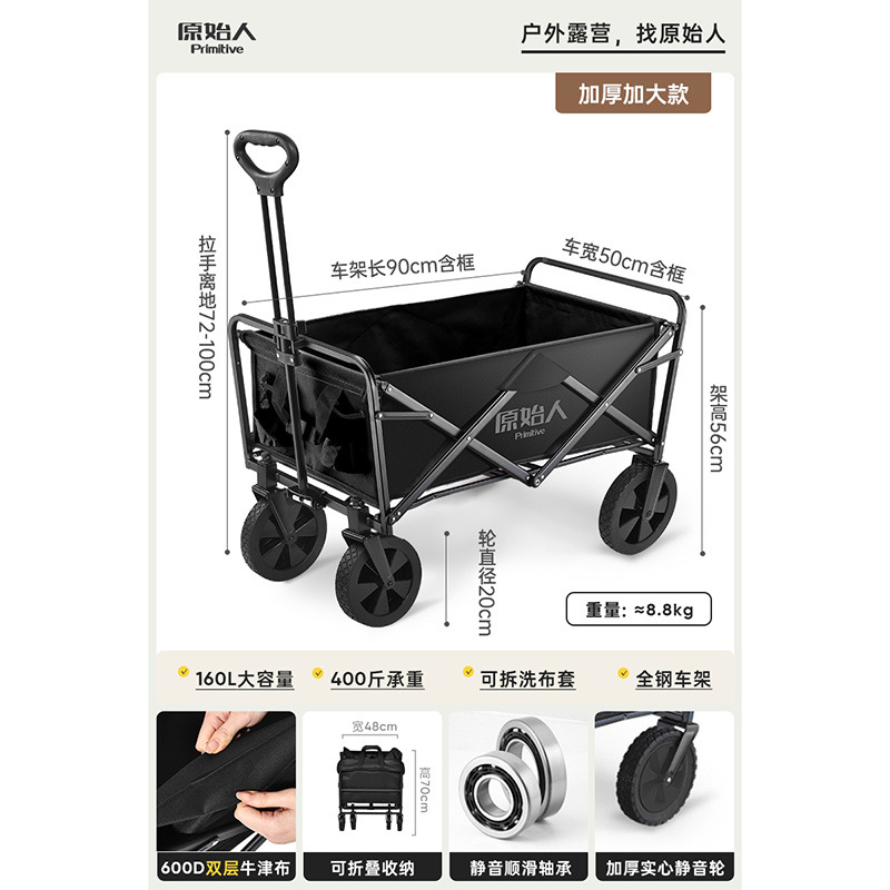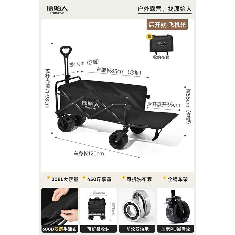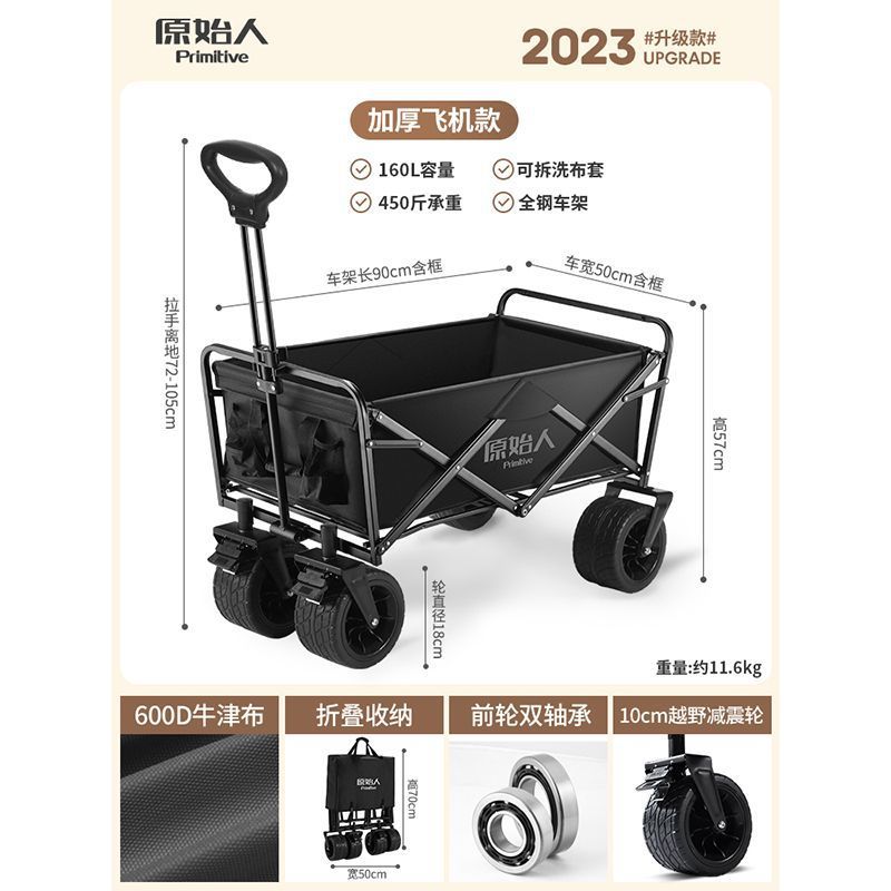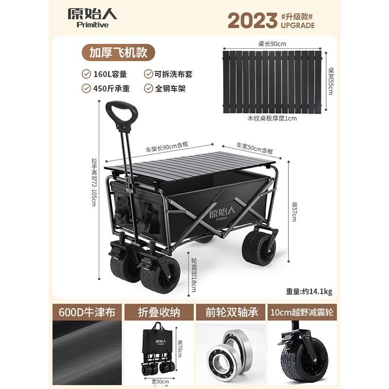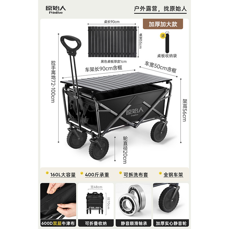 • 캠핑/택배/식료품 쇼핑/상품 운반/낚시 [다양한 장면에 적용 가능] - 확대된 무소음 모델 야오 블랙 + 알루미늄 합금 접이식 테이블 [몇 초 만에 피크닉 카트로 변신]