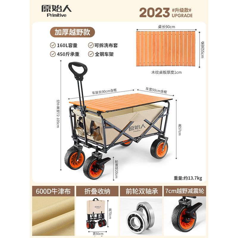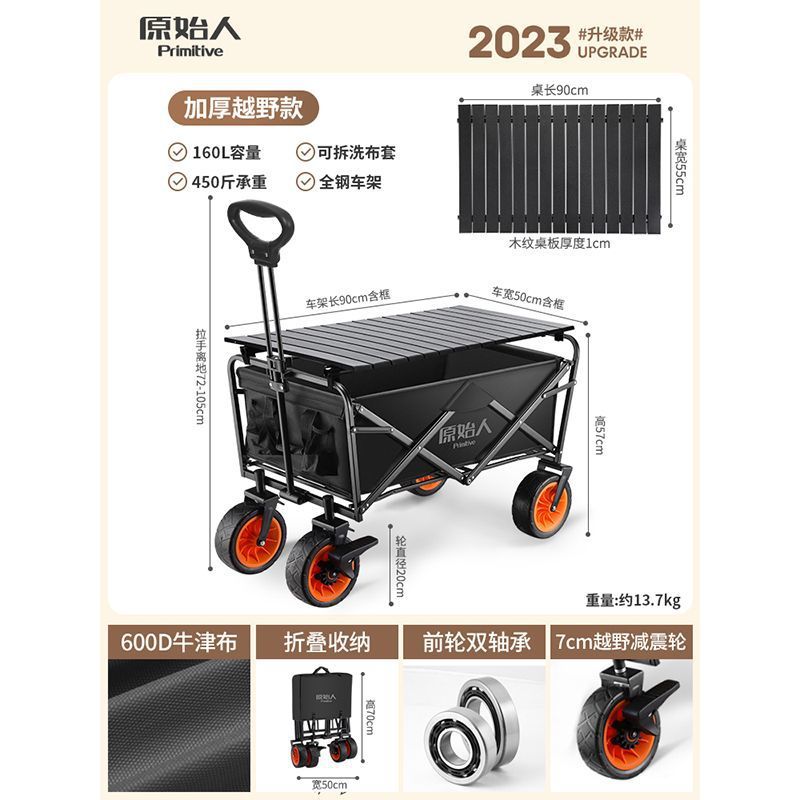 • 캠핑/택배/식료품 쇼핑/상품 운반/낚시 [다양한 장면에 적용 가능] - 오프로드 충격 흡수 모델 흑요석 + 알루미늄 합금 접이식 테이블 [몇 초 만에 피크닉 카트로 변신]
