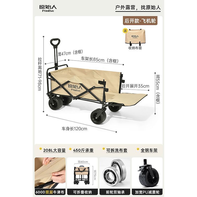• 캠핑/택배/식료품 쇼핑/물건 가져오기/낚시 [다양한 장면에 적용 가능] - 후면 개방형 [항공기 충격 흡수 모델 - Yaobei] 더블 브레이크 + 충격 흡수 무소음 범용 휠