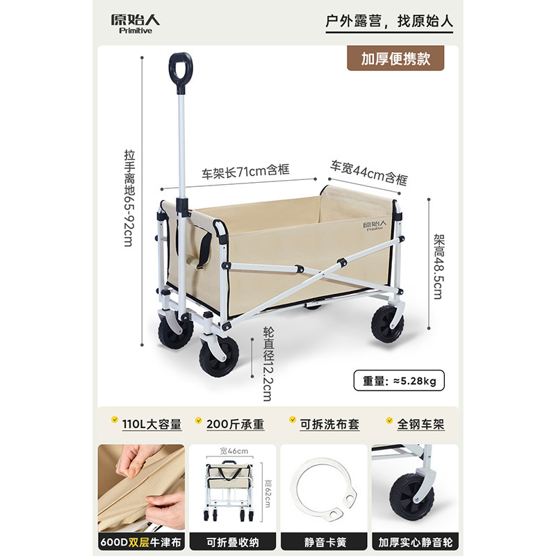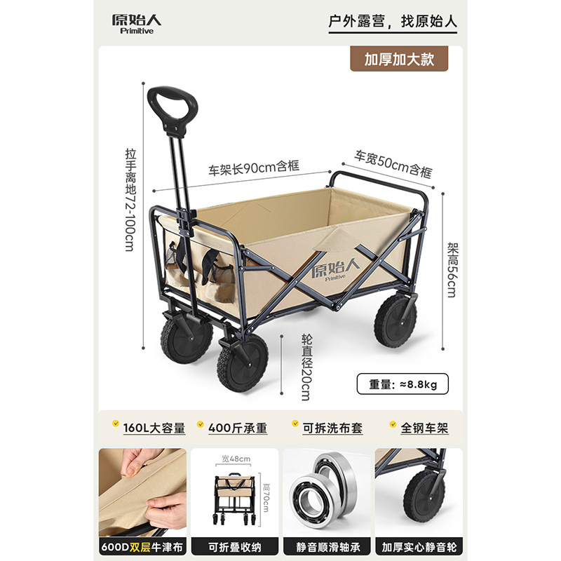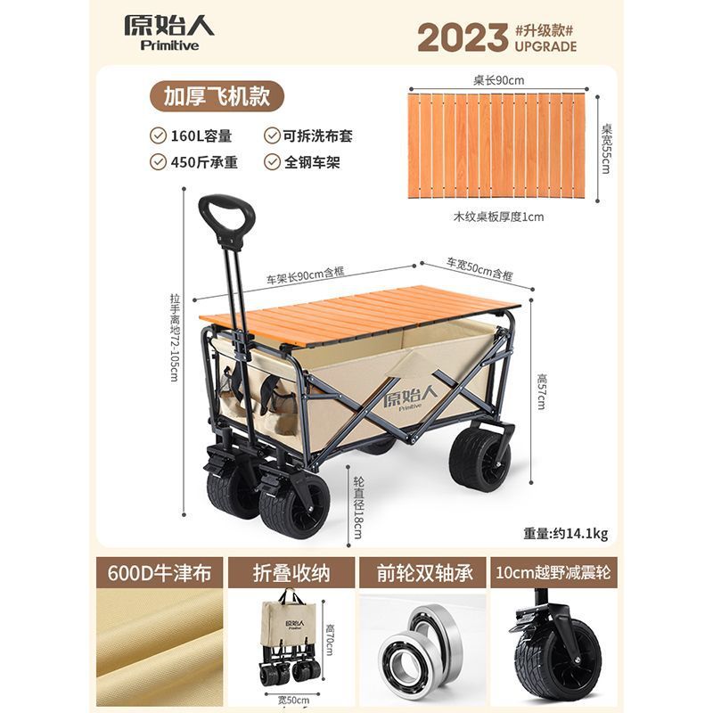 • 캠핑/택배/식료품 쇼핑/상품 운반/낚시 [다양한 장면에 적용 가능] - 확대된 사일런트 카키 + 알루미늄 합금 접이식 테이블 [몇 초 만에 피크닉 카트로 변신]