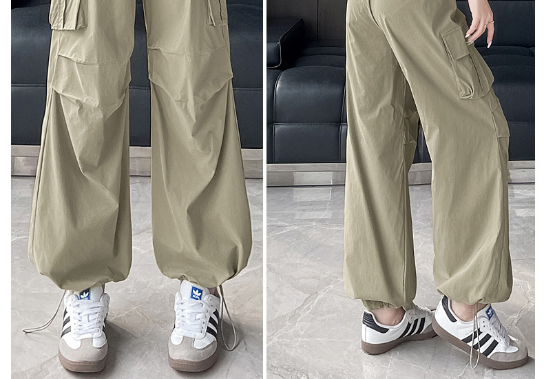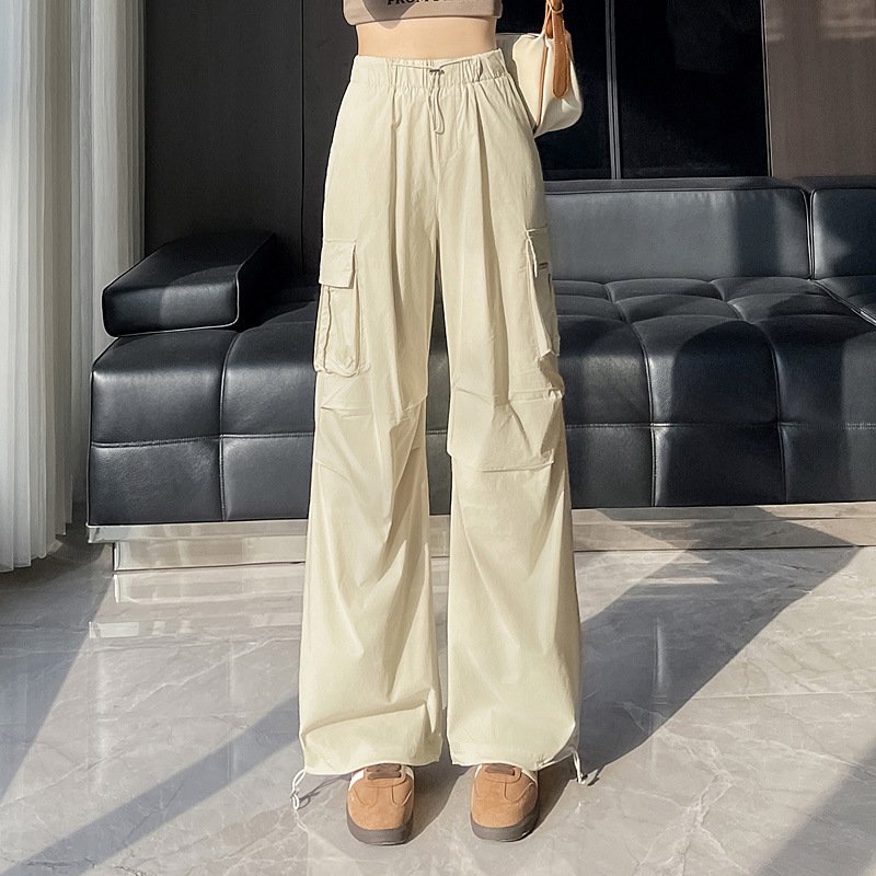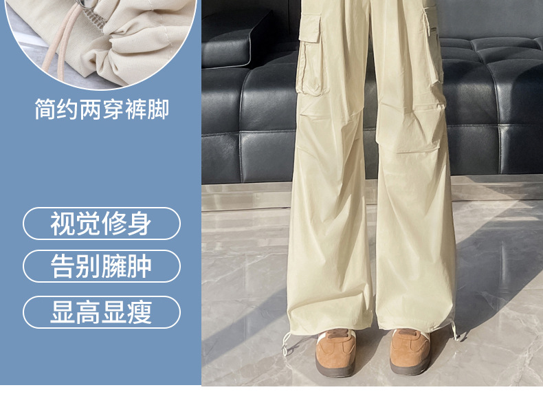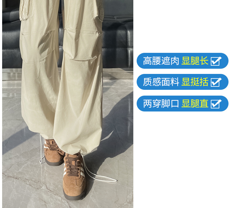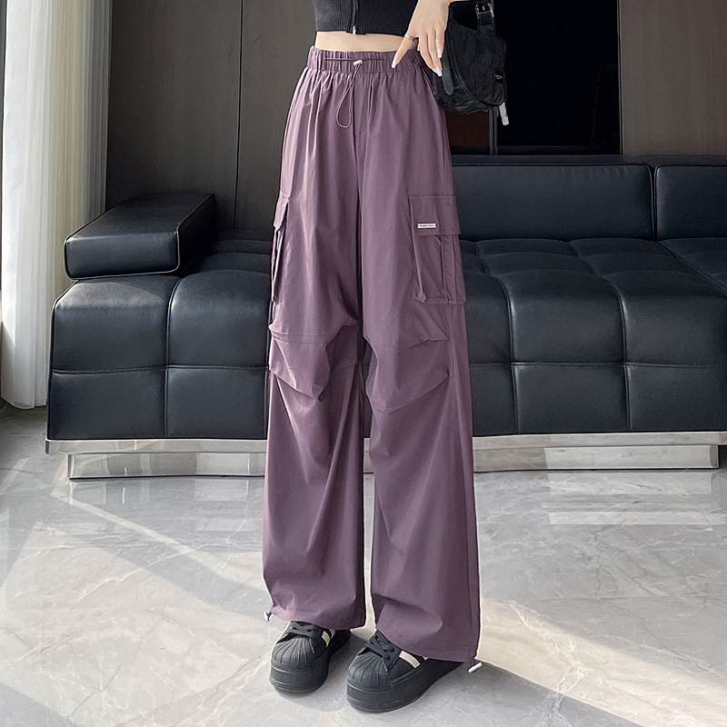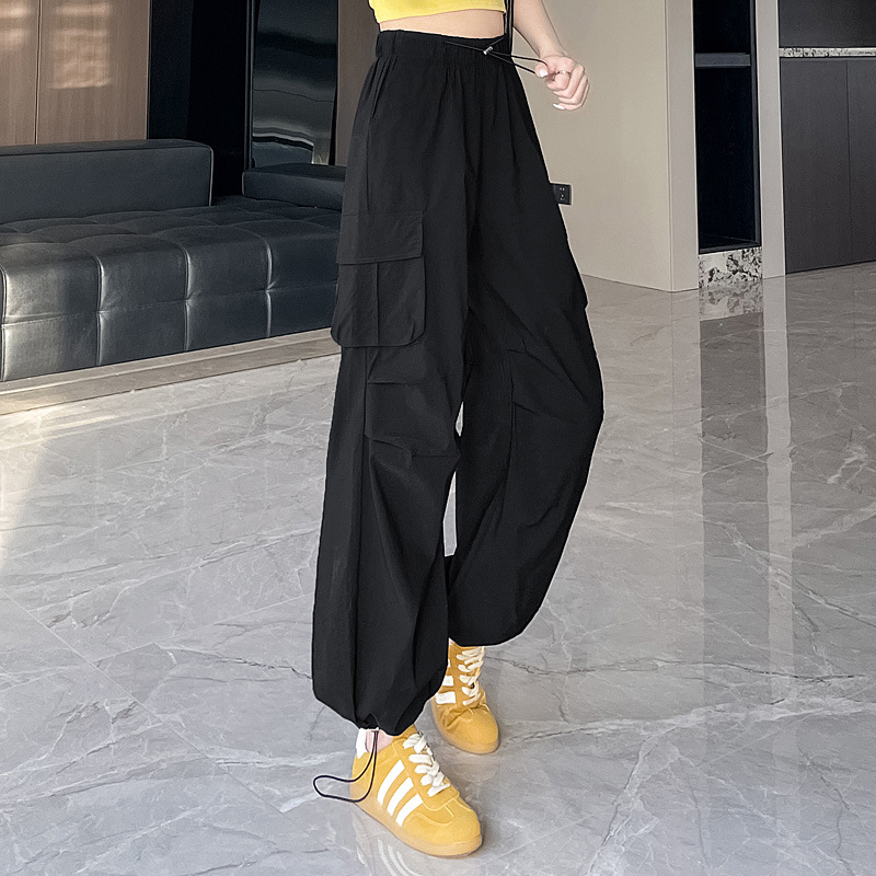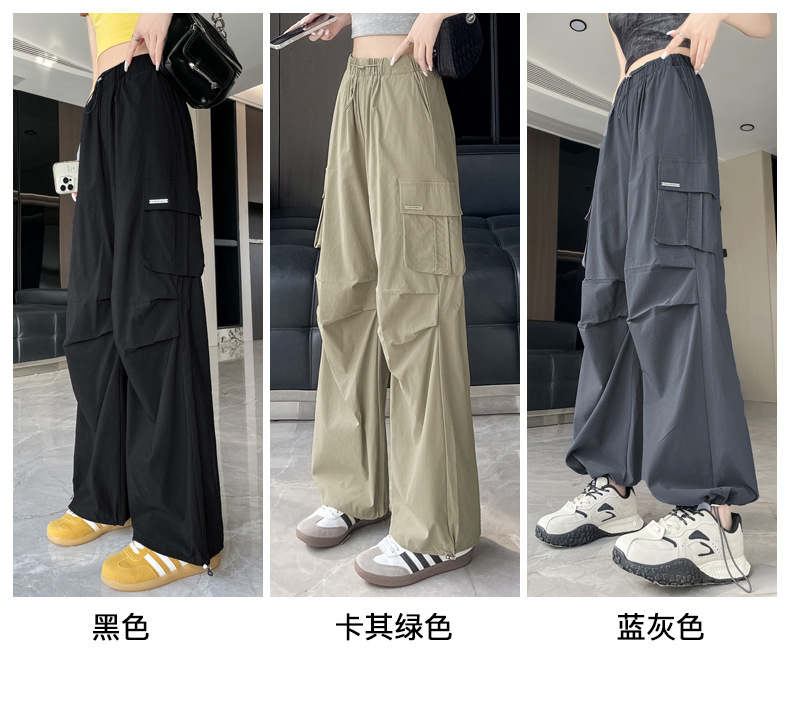 빠른 건조 크록 바지 여성 여름 얇은 새로운 높은 허리 슬리밍 미국 느슨한 쿨 사우어 스타일 등산 낙하산 바지 3395스토어 가기