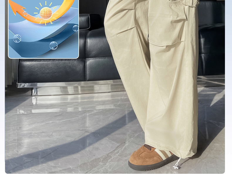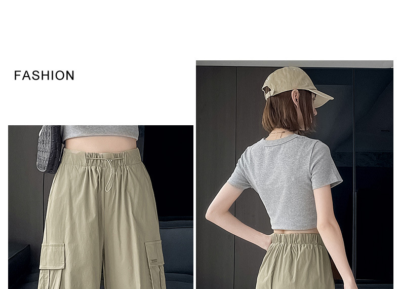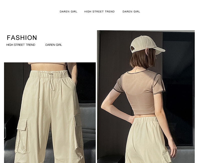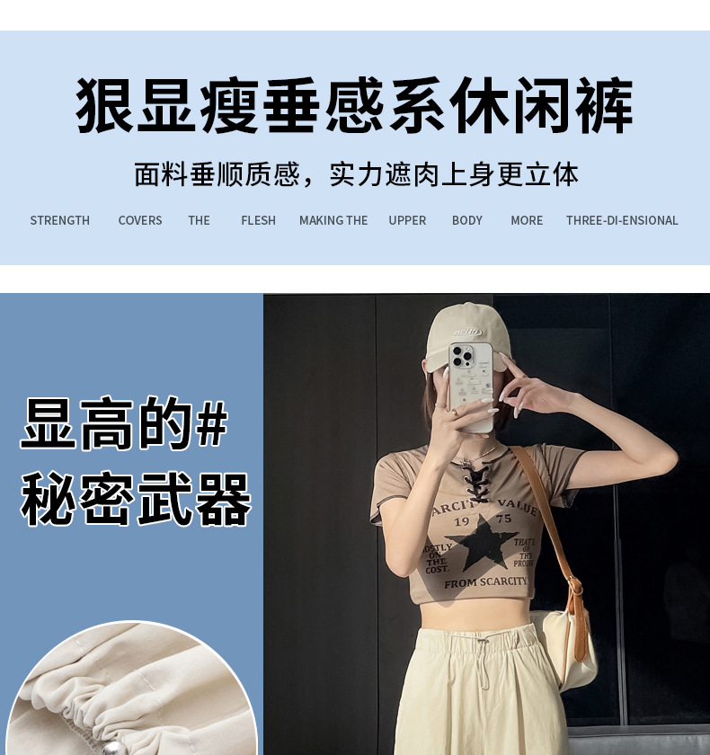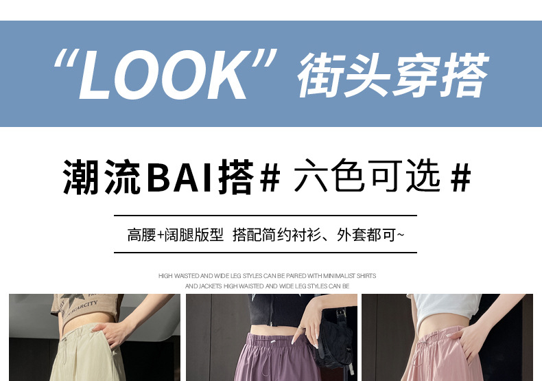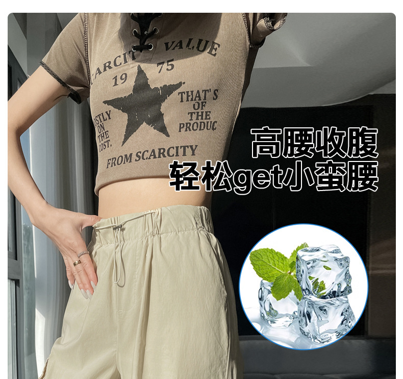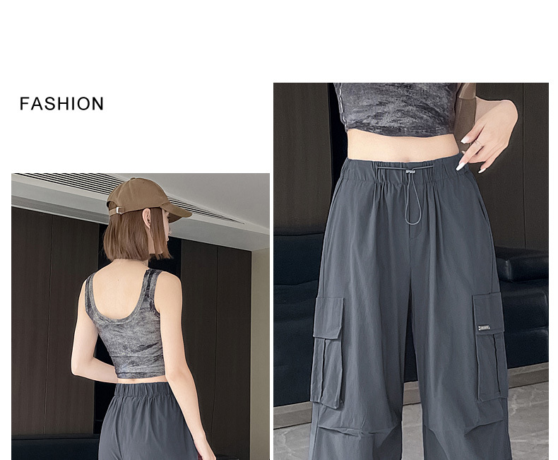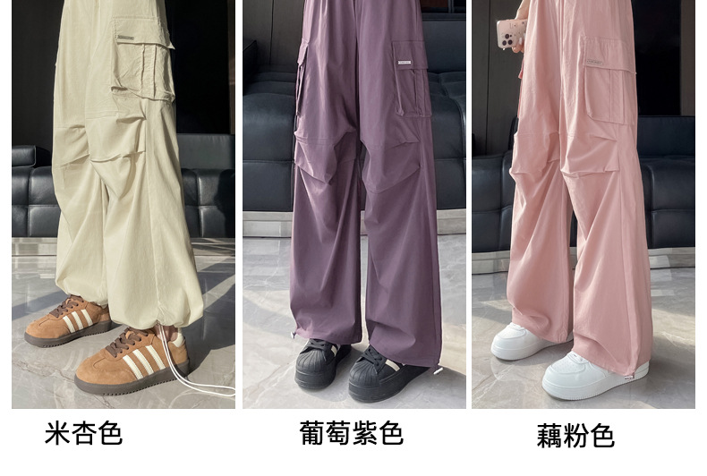 빠른 건조 크록 바지 여성 여름 얇은 새로운 높은 허리 슬리밍 미국 느슨한 쿨 사우어 스타일 등산 낙하산 바지 3395스토어 가기