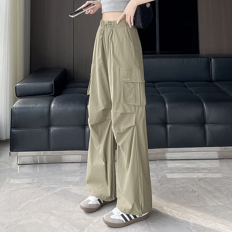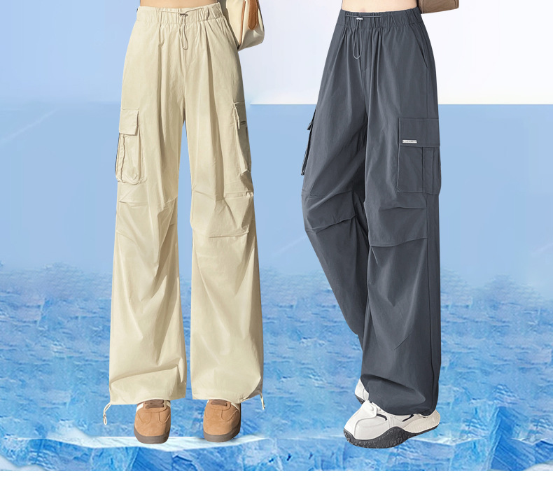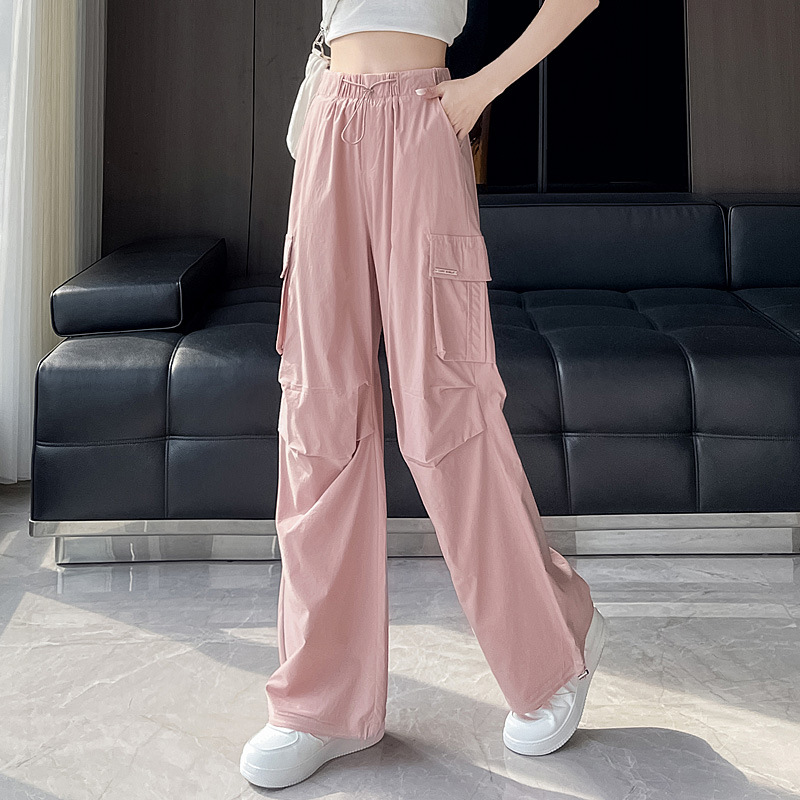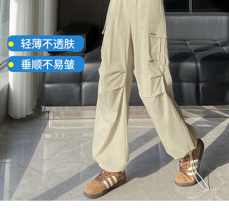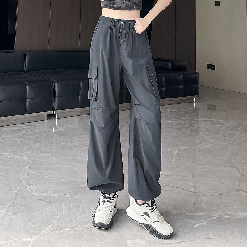 빠른 건조 크록 바지 여성 여름 얇은 새로운 높은 허리 슬리밍 미국 느슨한 쿨 사우어 스타일 등산 낙하산 바지 3395
