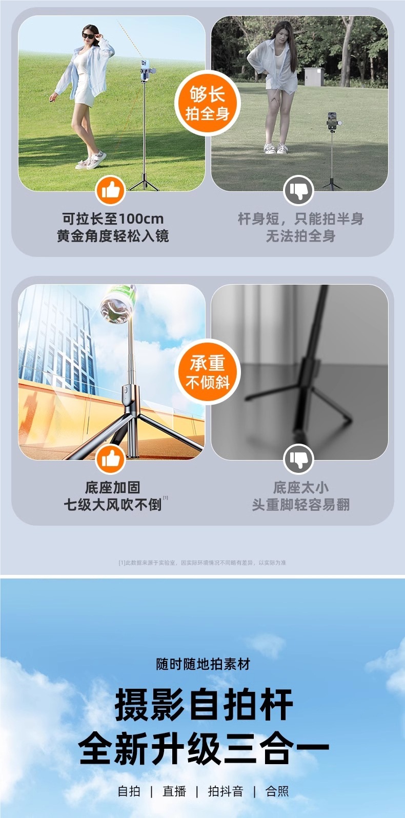 • 1m 흰색 [표준 모델] 합금강 삼각형 지지대 15m 블루투스 리모콘