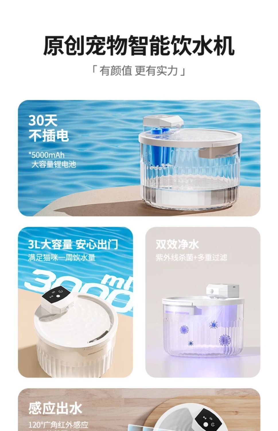 • 지능형 센서 블루라이트 살균 [달빛백색, 배터리 수명 60일] 물과 전기 분리