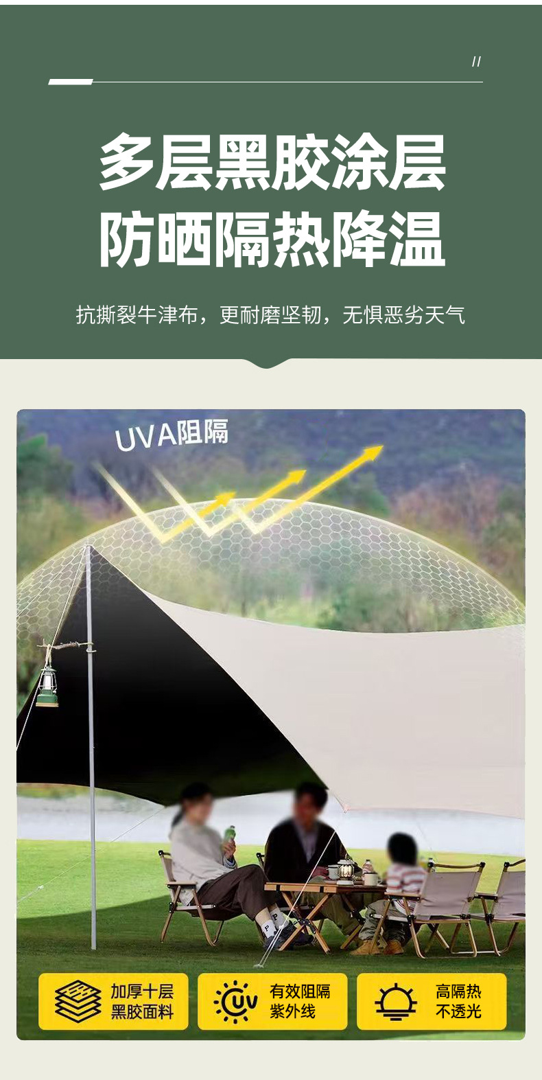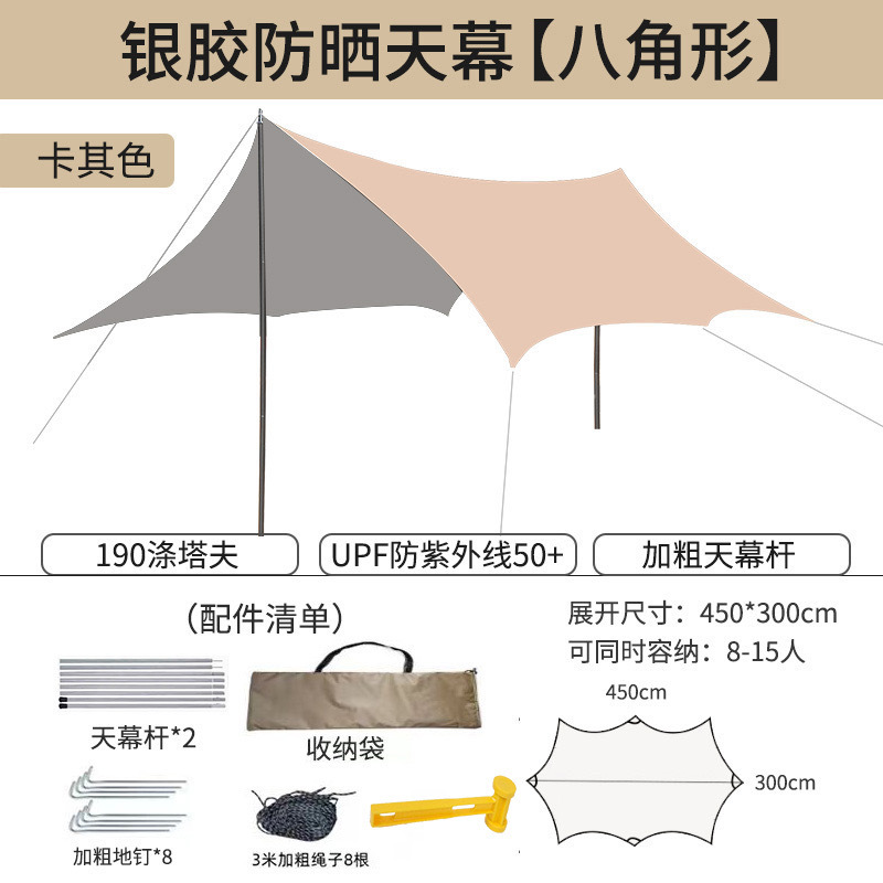야외용 두꺼운 사각형 블랙글로스 캠핑 피크닉 나비형 차양 팔각형 파라솔 자외선 차단