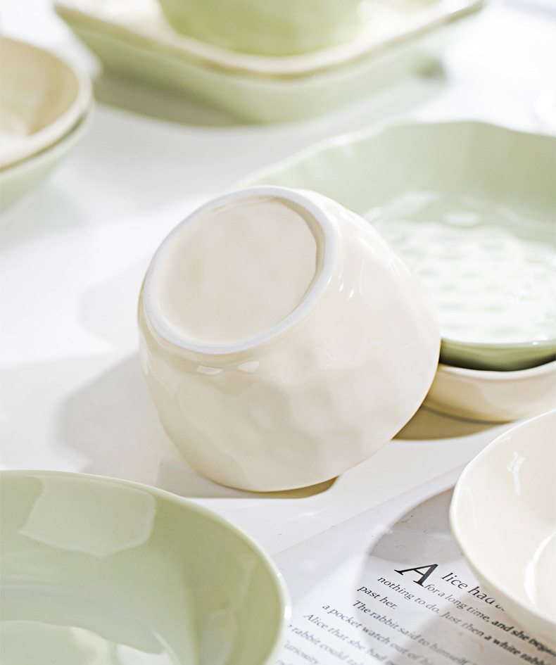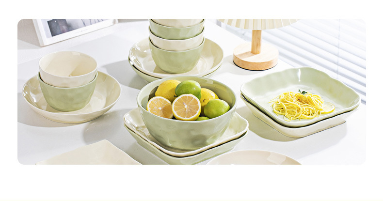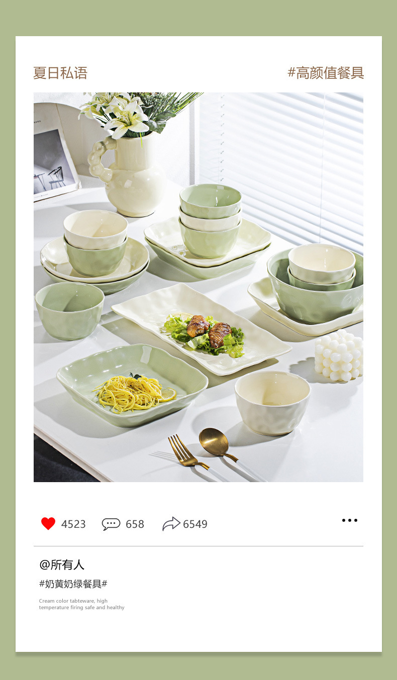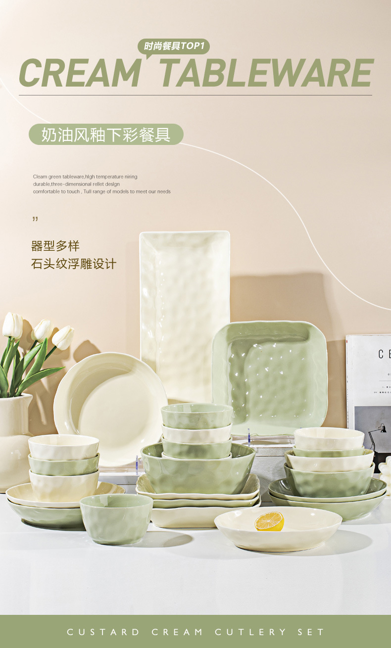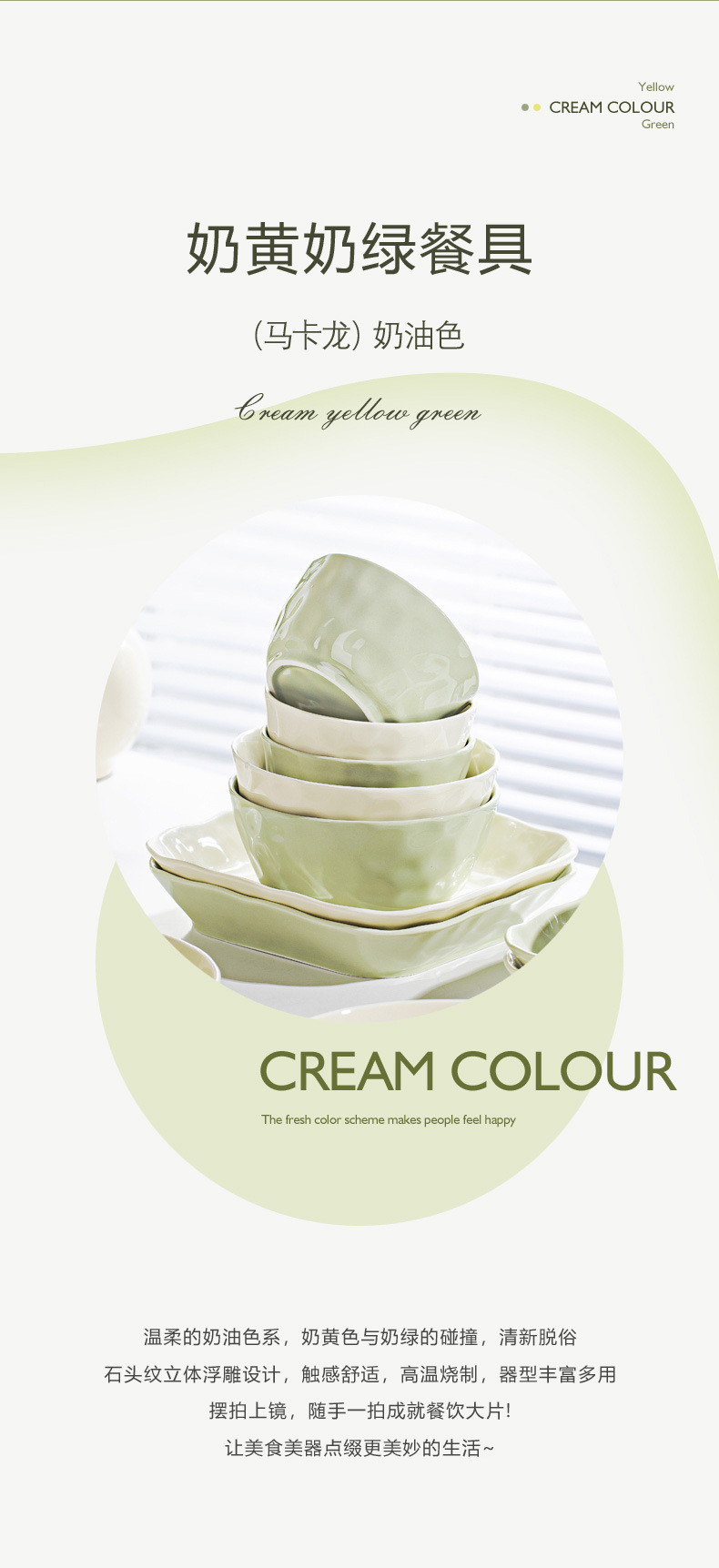 Jingdezhen 세라믹 식기 마카롱 크림 스타일 우유 노란색 우유 녹색 유약 색상 높은 색상 가치 생선 접시 식기