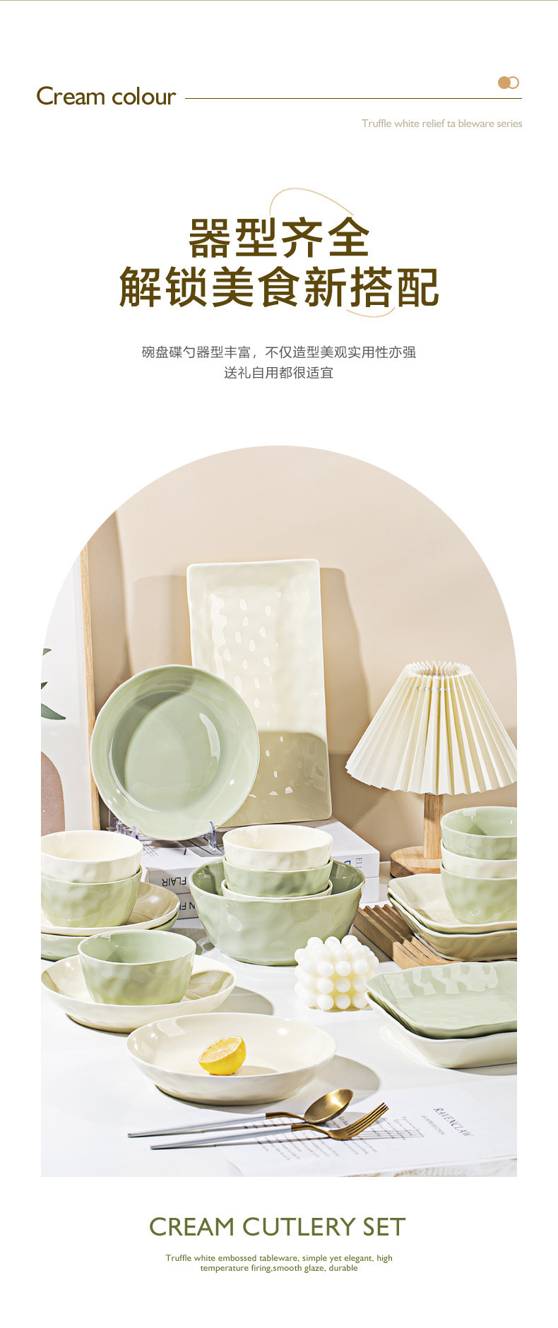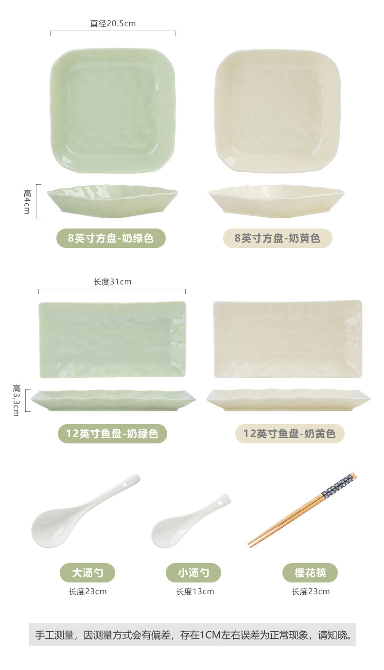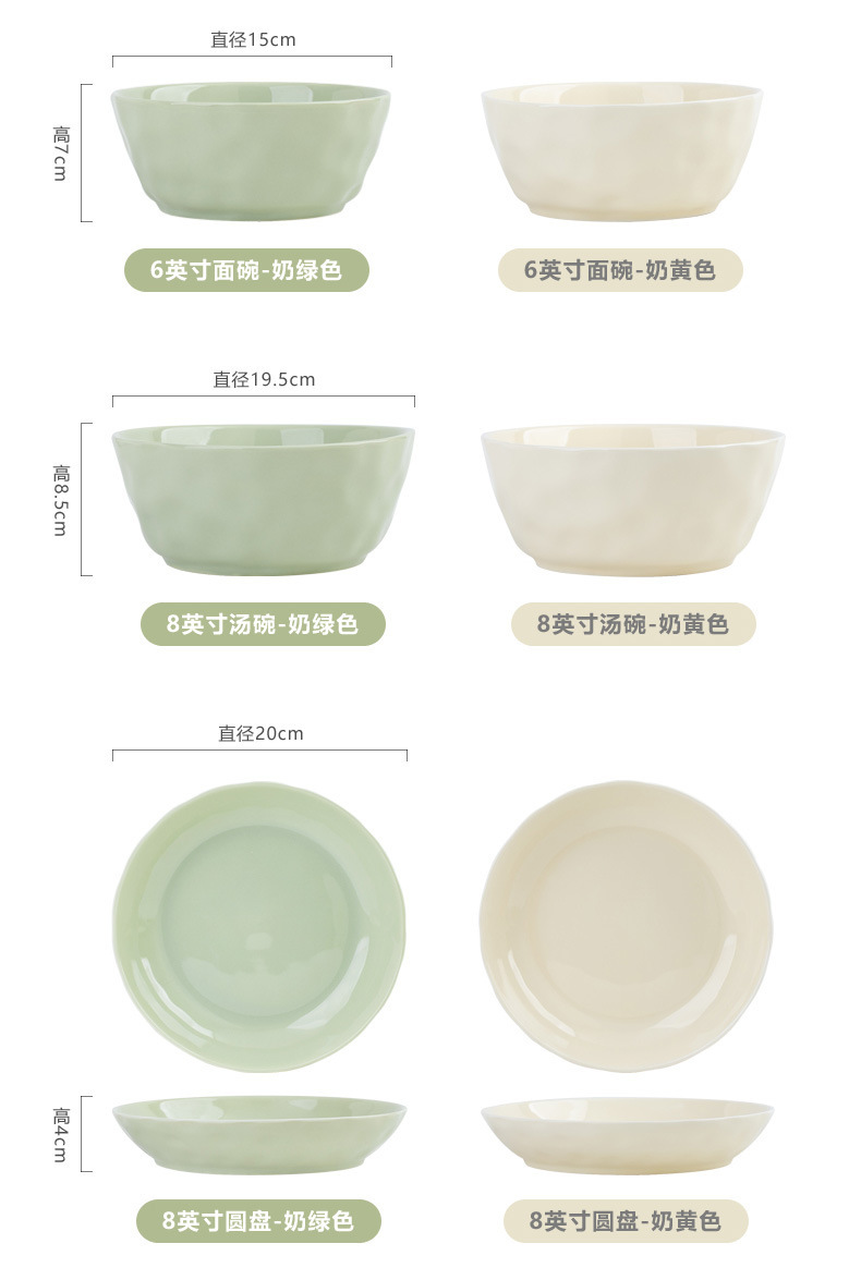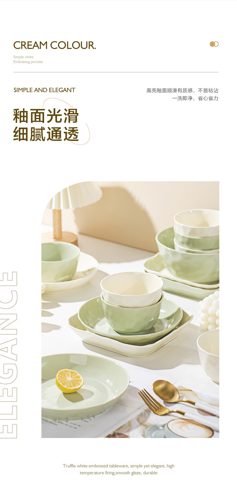Jingdezhen 세라믹 식기 마카롱 크림 스타일 우유 노란색 우유 녹색 유약 색상 높은 색상 가치 생선 접시 식기