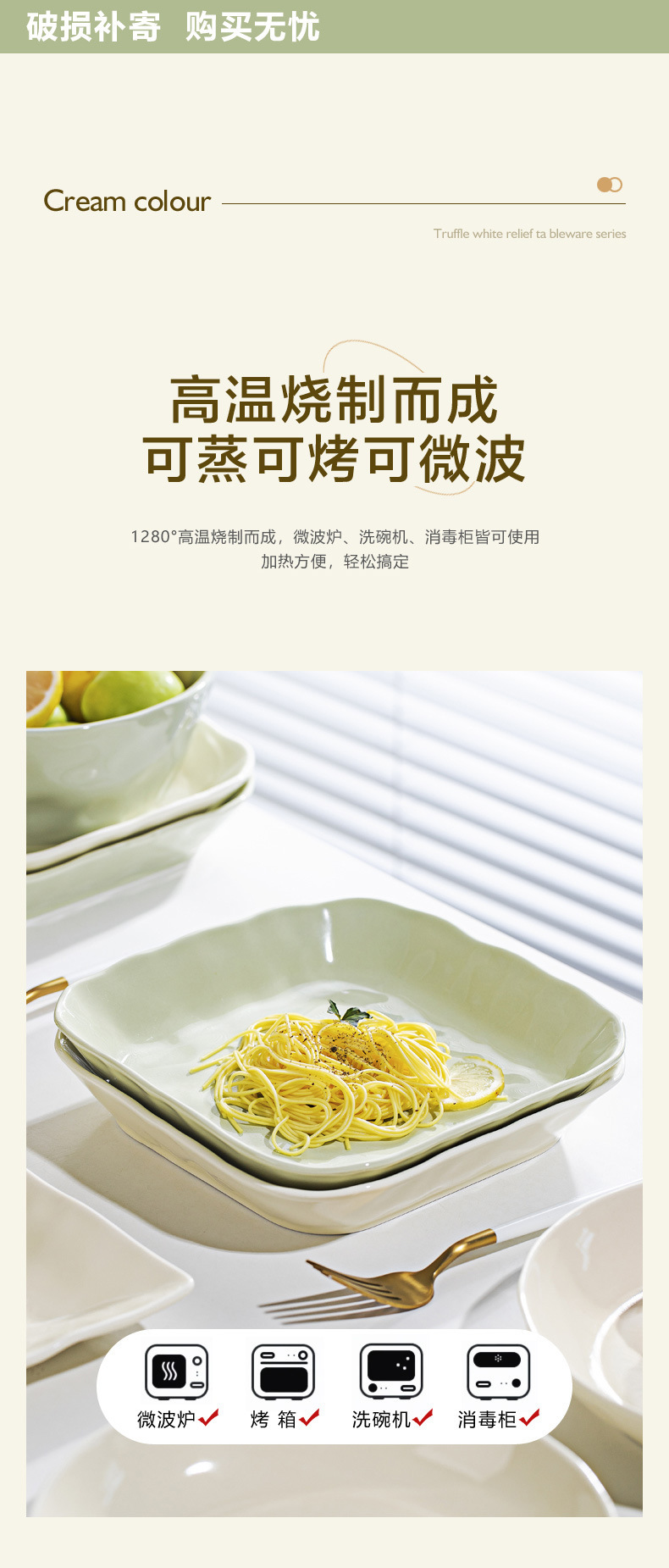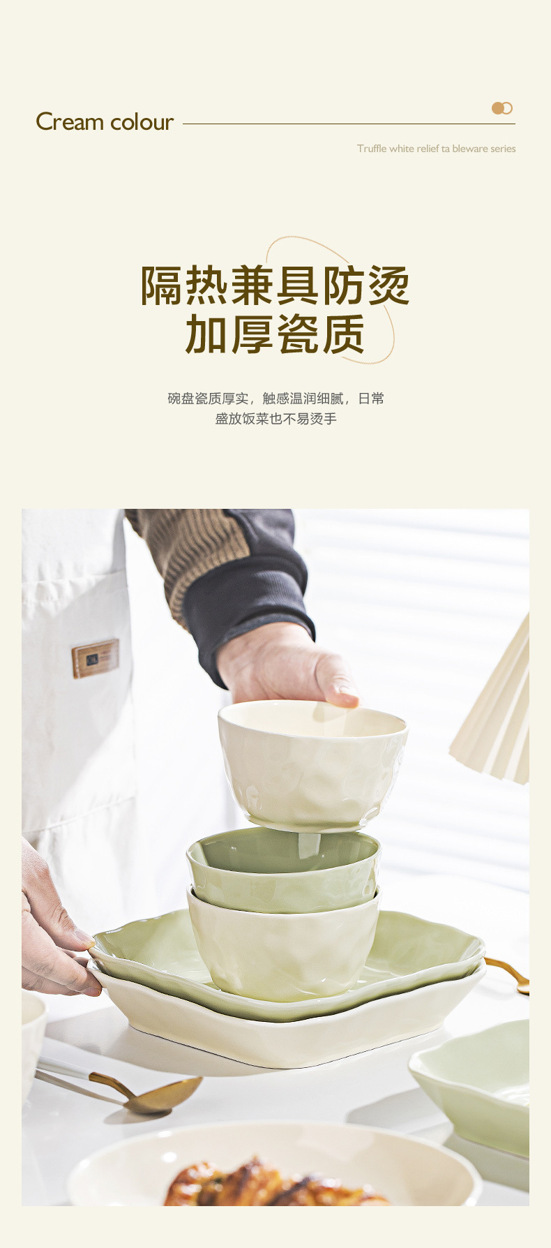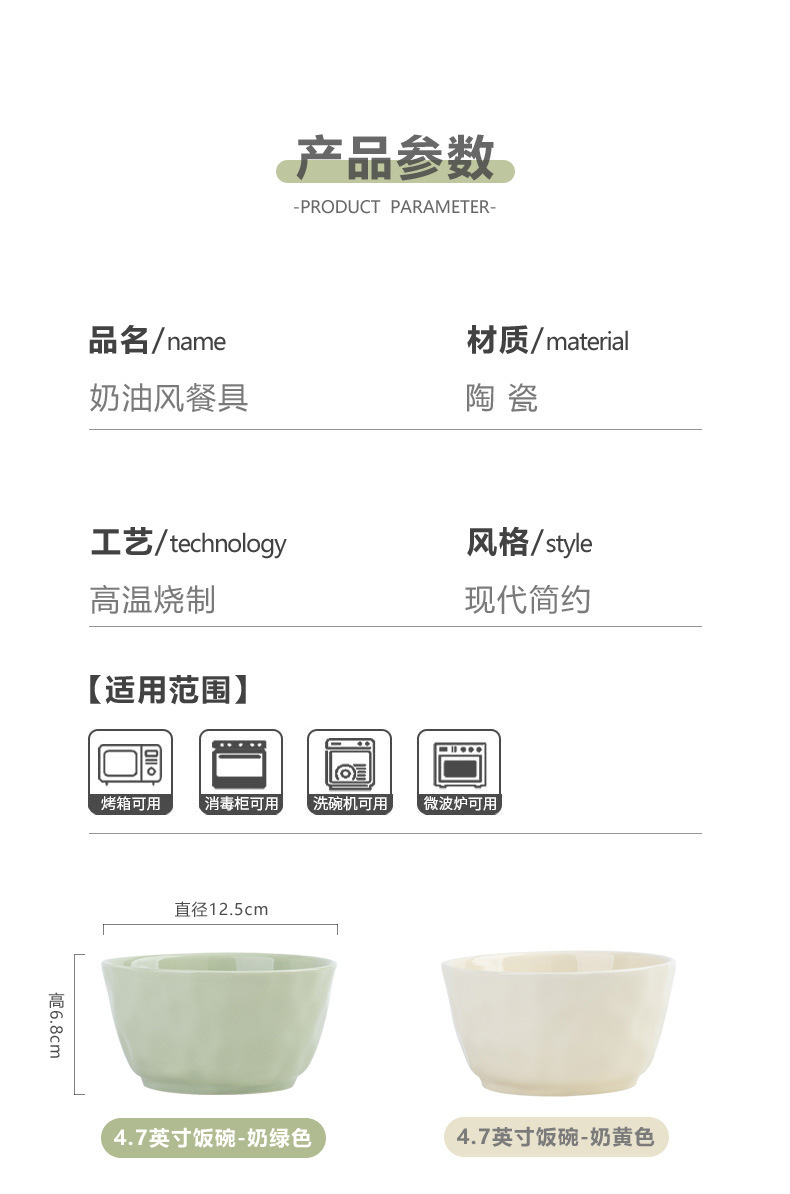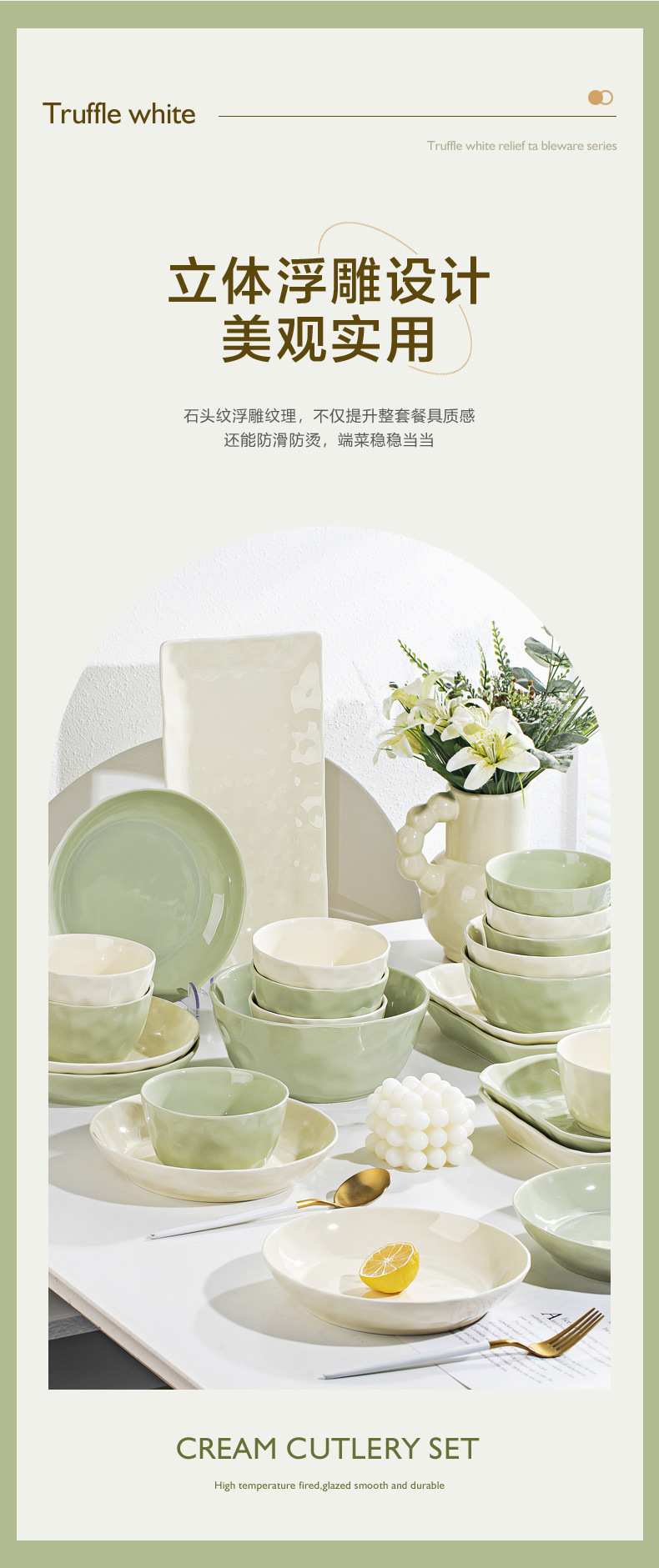 Jingdezhen 세라믹 식기 마카롱 크림 스타일 우유 노란색 우유 녹색 유약 색상 높은 색상 가치 생선 접시 식기