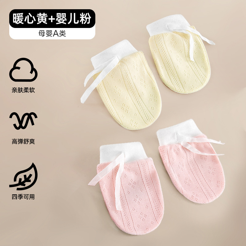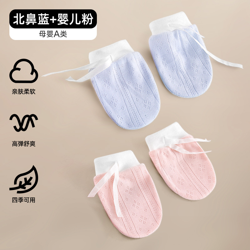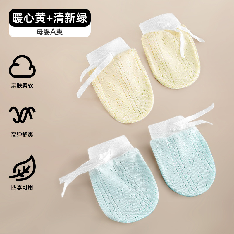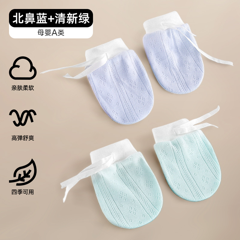 Jingqi 아기 장갑 안티 스크래치 얼굴 유물 봄과 여름 씹을 수있는 얇은 신생아 아기 장갑 가방 여름스토어 가기