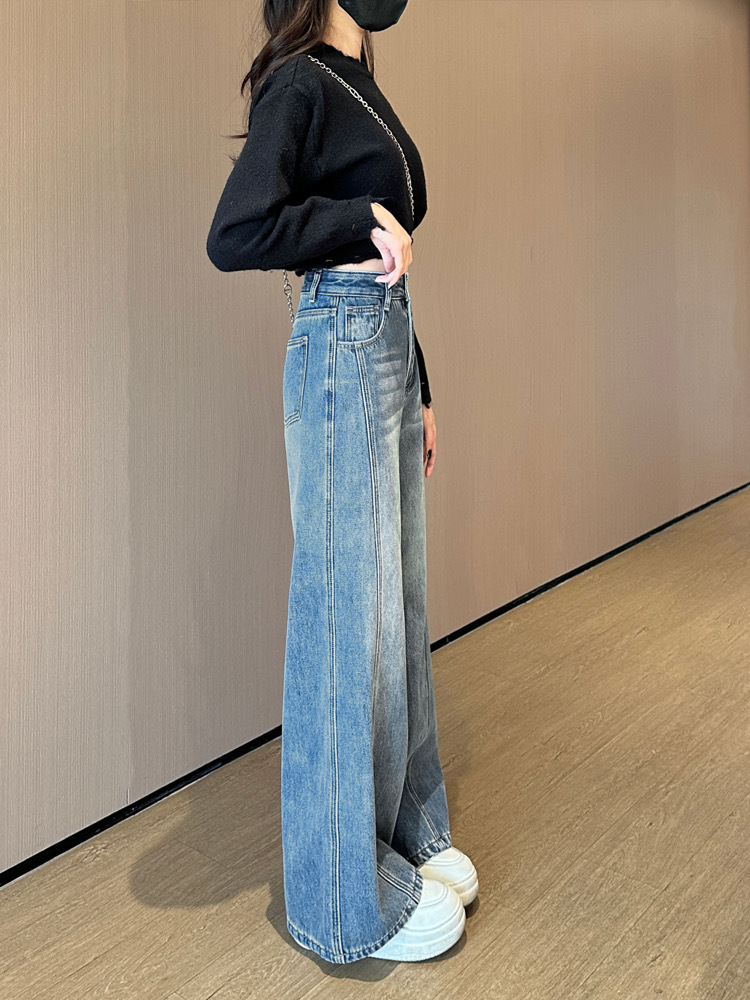 ♥️轻松凹造型❗️ 一刀切立裁牛仔裤❗️时尚博主们常年穿搭裤王🤣立裁设计|显瘦松弛感【复古一刀切高街牛仔阔腿裤】