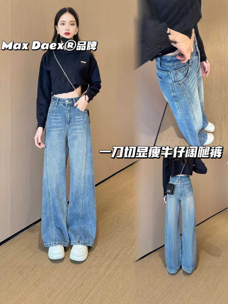 一刀切显瘦牛仔阔腿裤✔️超值价