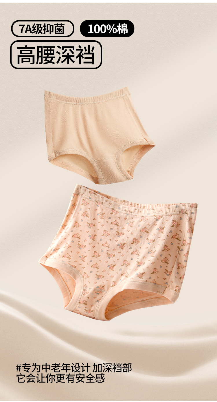 중년 및 노년 여성용 삼각 팬티 순면 여성용 얇은 대형 사이즈 하이웨이스트 반바지 할머니용 순면 팬티 여름용 복부 조임스토어 가기