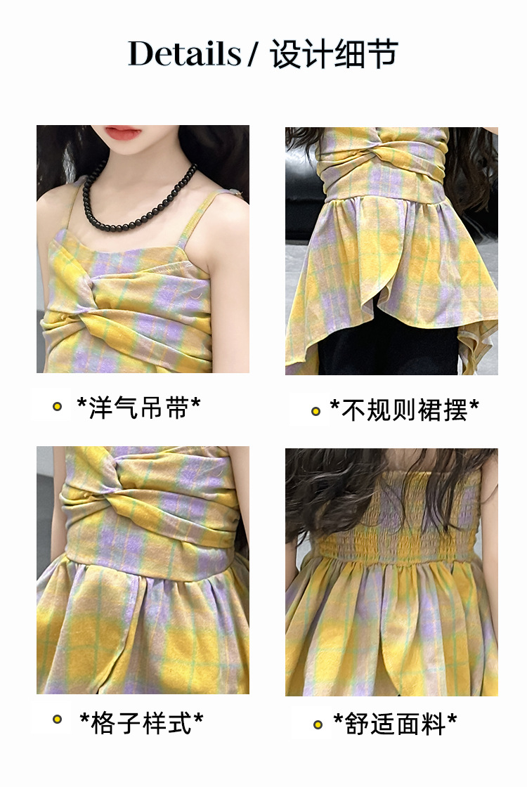 크로스 보더 걸스 여름 원피스 반바지 2025 세트 어린이 여름 패션 격자 무늬 슬립 스커트 바지 세트스토어 가기