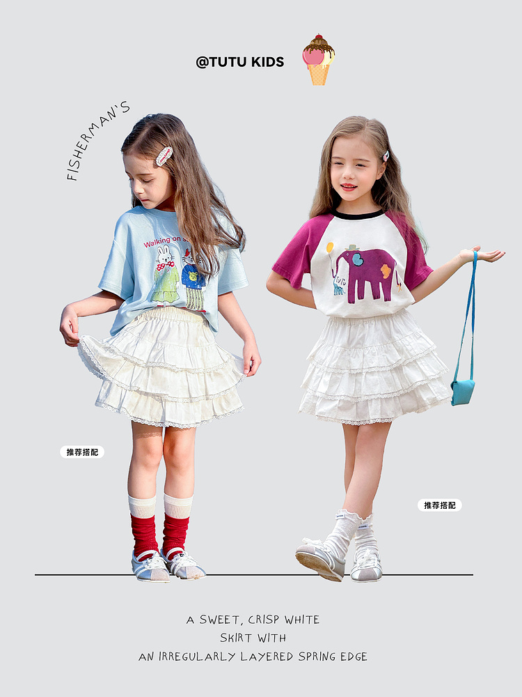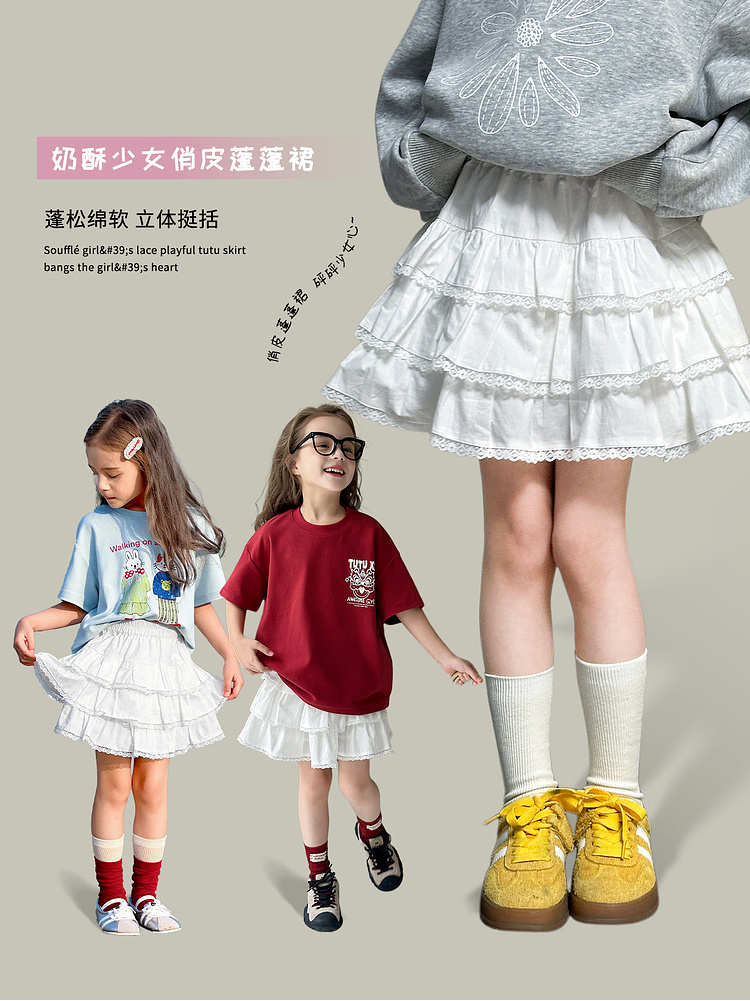 투투 코끼리 아동복 여자 치마 투투 스커트 2025 새로운 어린이 치마 짧은 치마 주름 치마 케이크 치마스토어 가기