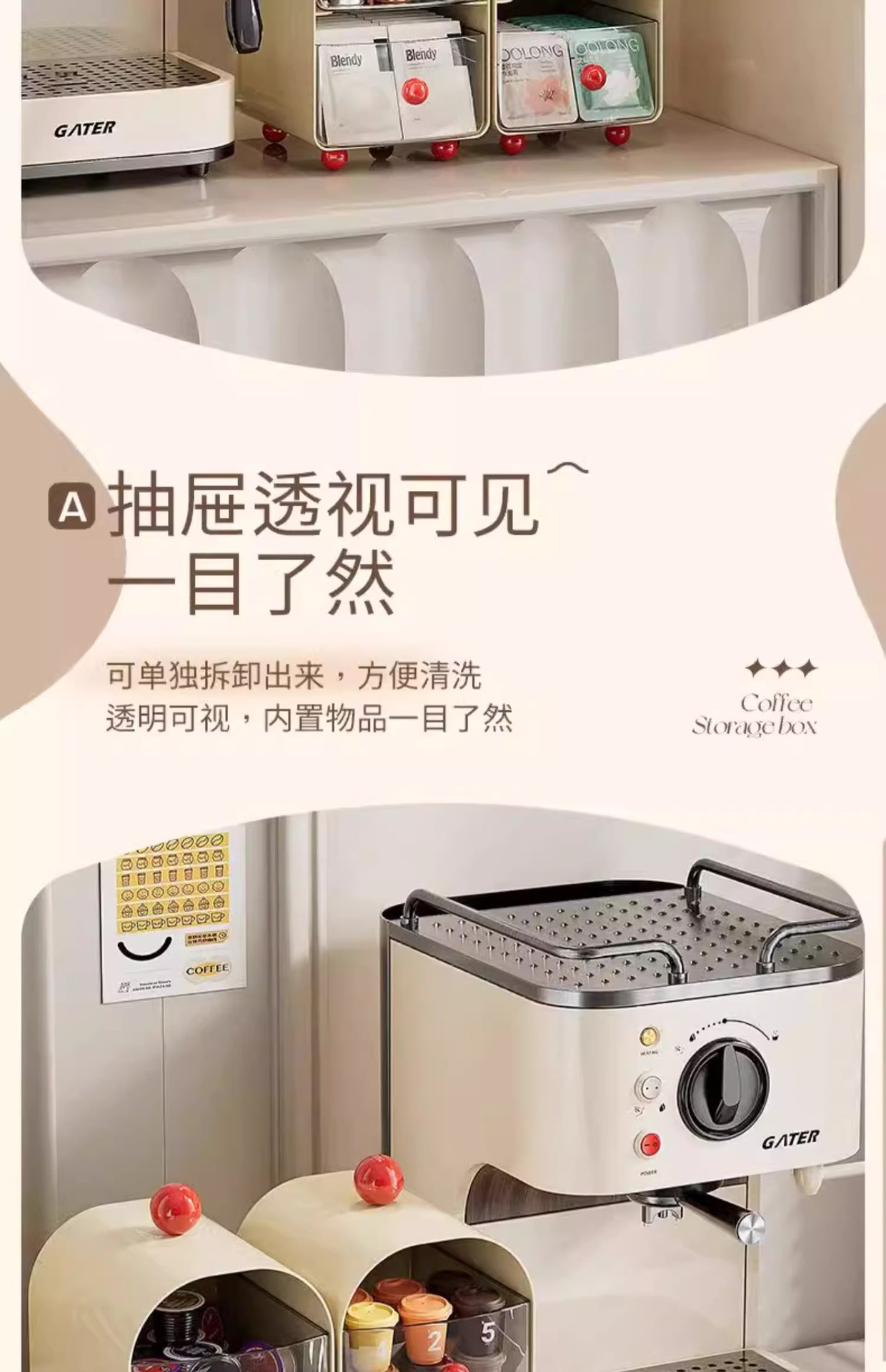 커피 코너 데스크탑 티백 보관 상자 서랍 사무실 다방 식사 테이블 보관 랙 캡슐 커피 보관 랙스토어 가기