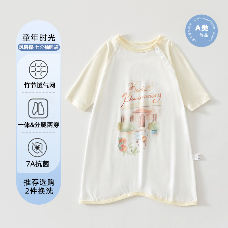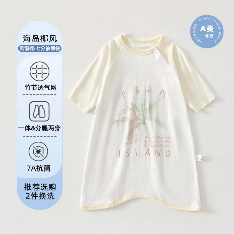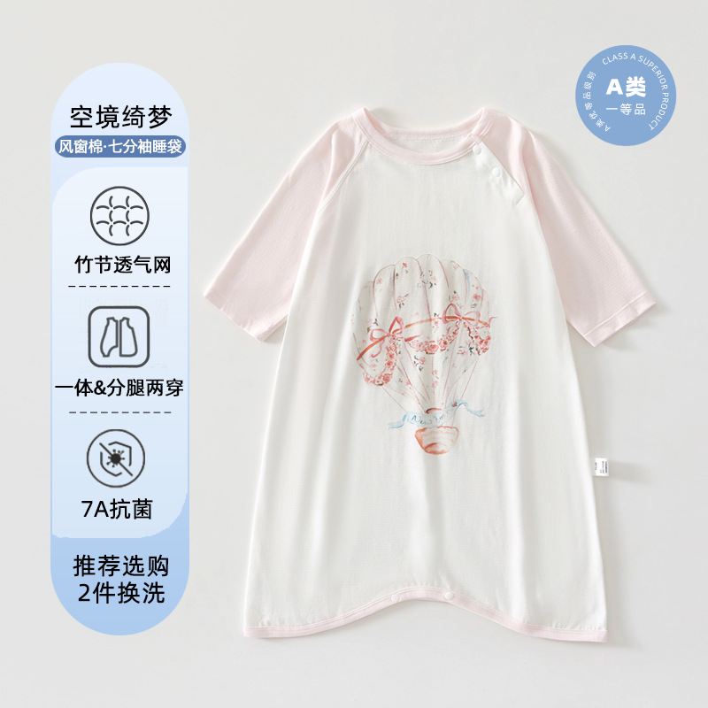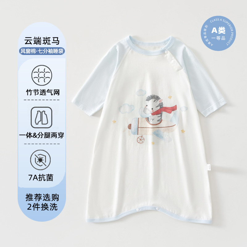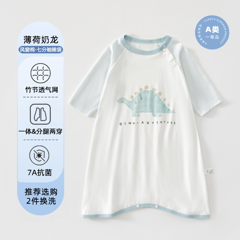 아기 잠자는 가방 여름 얇은 새로운 2025 잠옷 어린이 7 소매 에어컨 방 소년 소녀 아기 잠옷스토어 가기